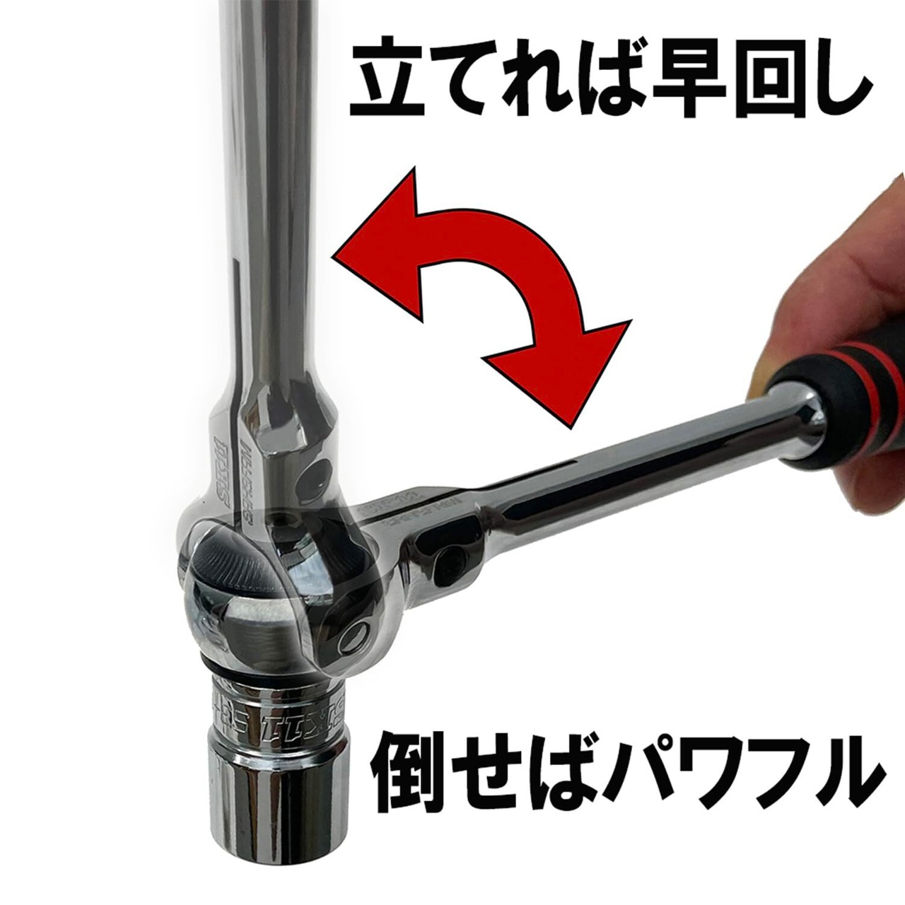 SK11(エスケー11) スイベルラチェットハンドル 差込角 9.5mm 3/8インチ SRH3FRS 72山ギア 全長150mm