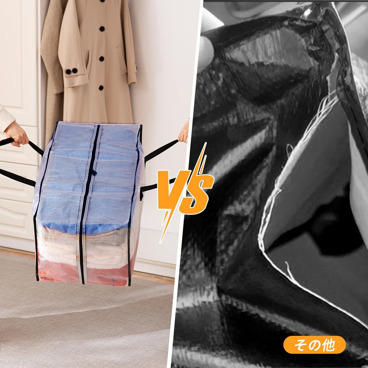 TAILI 大型収納袋 引越しバッグ 布団収納カバン 特大容量 ビッグバッグ 寝具ケース 持ち手付き 洋服 衣装ケース 羽毛ふとん 防塵防水 折りたたみ式 省スペース 引っ越し 背負える キャンプ 旅行 耐荷重 透明 4個セット