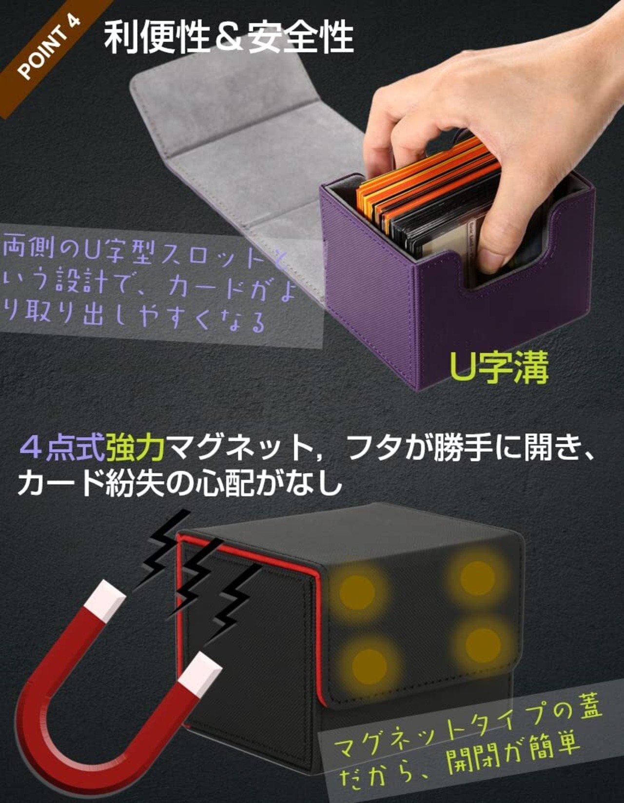 【定番の レザー調 デッキ ケース】トレーディングカードを整理するのに欠かせないアイテム「デッキケース」、かゆいところに手が届く豪華仕様。PU レザー調 シックで高級感があるので、仲間から一目置かれること間違いなし。