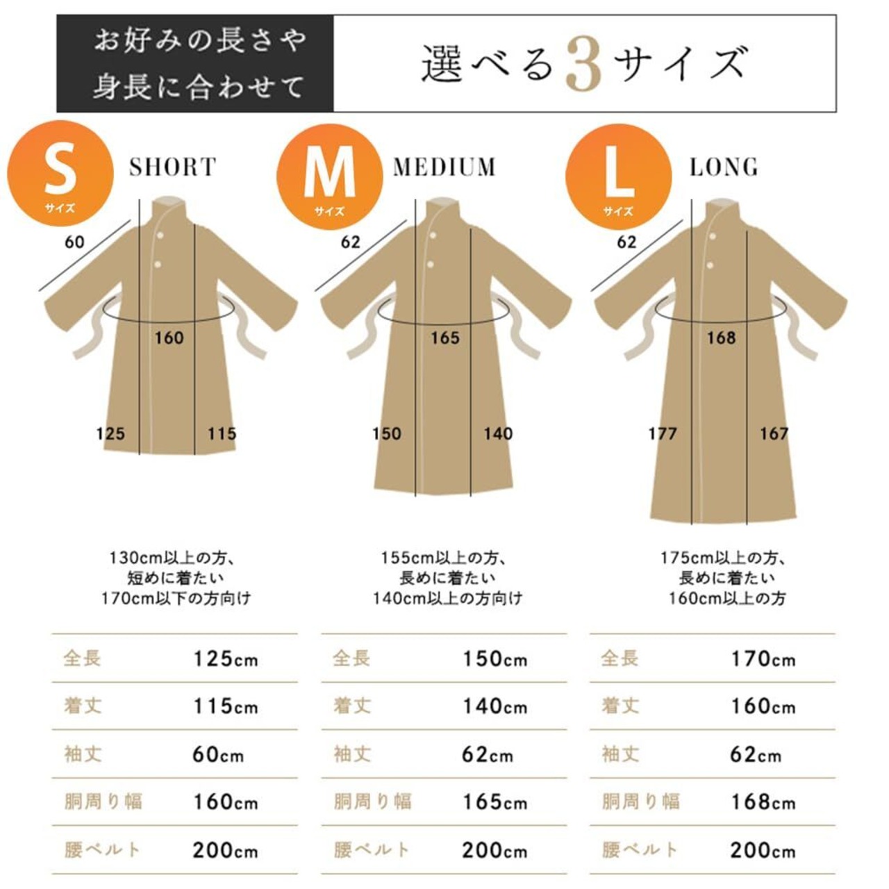 【サイズ】Lサイズ:幅約168cm×着丈約170cm