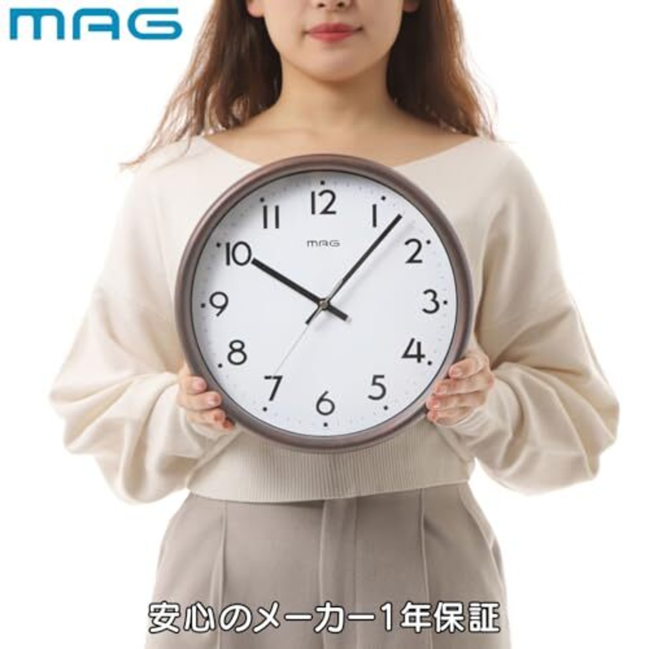 MAG(マグ) 掛け時計 電波時計 アナログ トルテ 夜間秒針停止機能付き 木目調 ブラウン W-768BR-Z