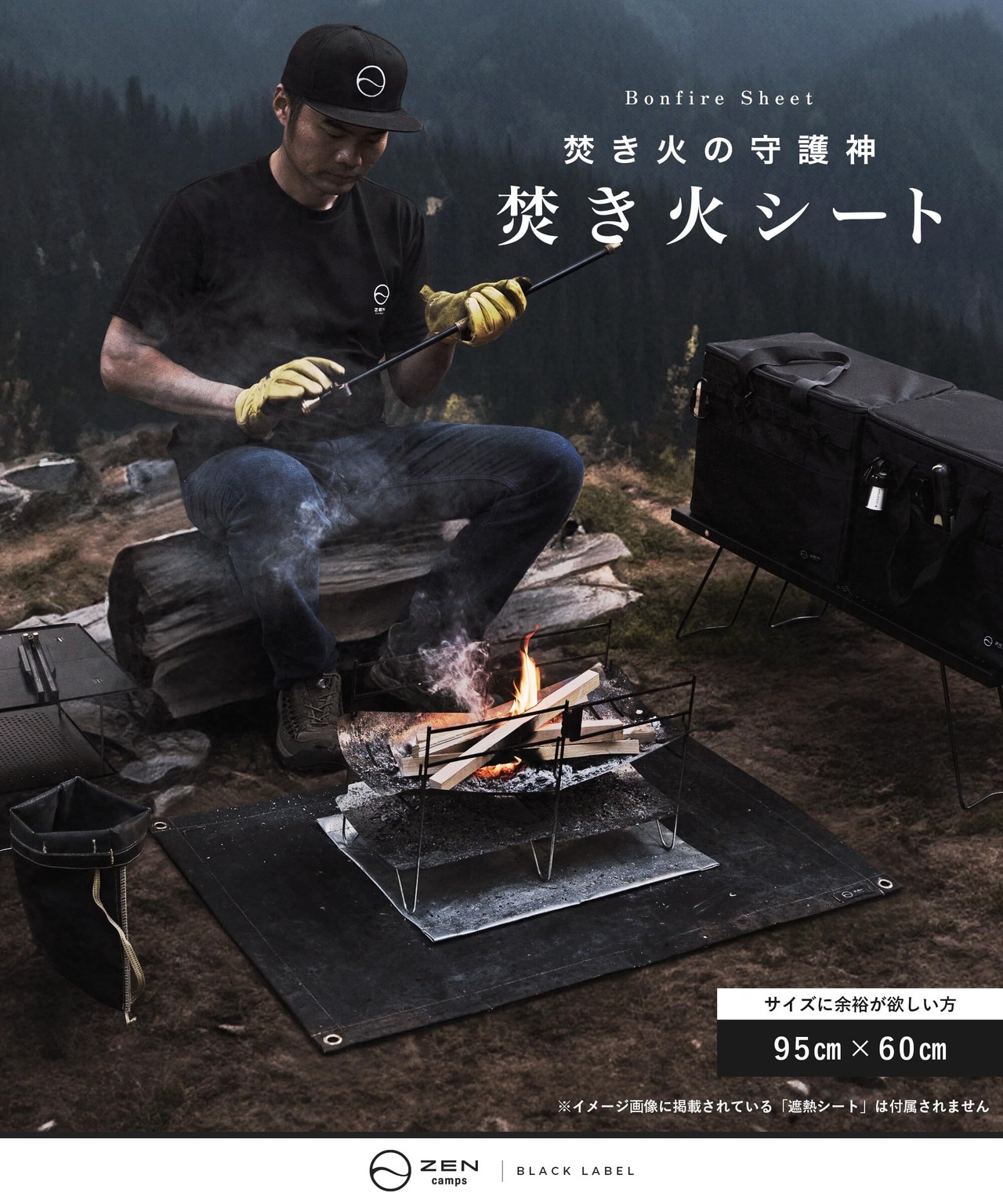 ZEN Camps 焚き火シート スパッタシート 焚き火台シート チクチクしない シリコン ブラック 黒 耐火 耐熱 防炎 防火 シート キャンプ 芝生保護【日本ブランド】 (95*60cm(オリジナル収納袋付))