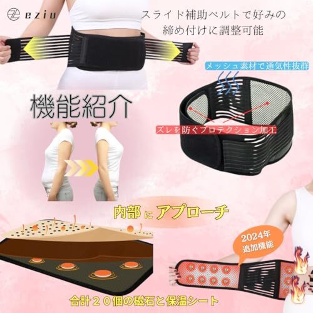 [eziu] 柔道整復師監修 瞬間くびれ 肋締めベルト コルセット ウエストニッパー 腰サポーター 肋骨ベルト 肋骨締め 男女兼用 (ブラック, 胴回り【60~77㎝】)