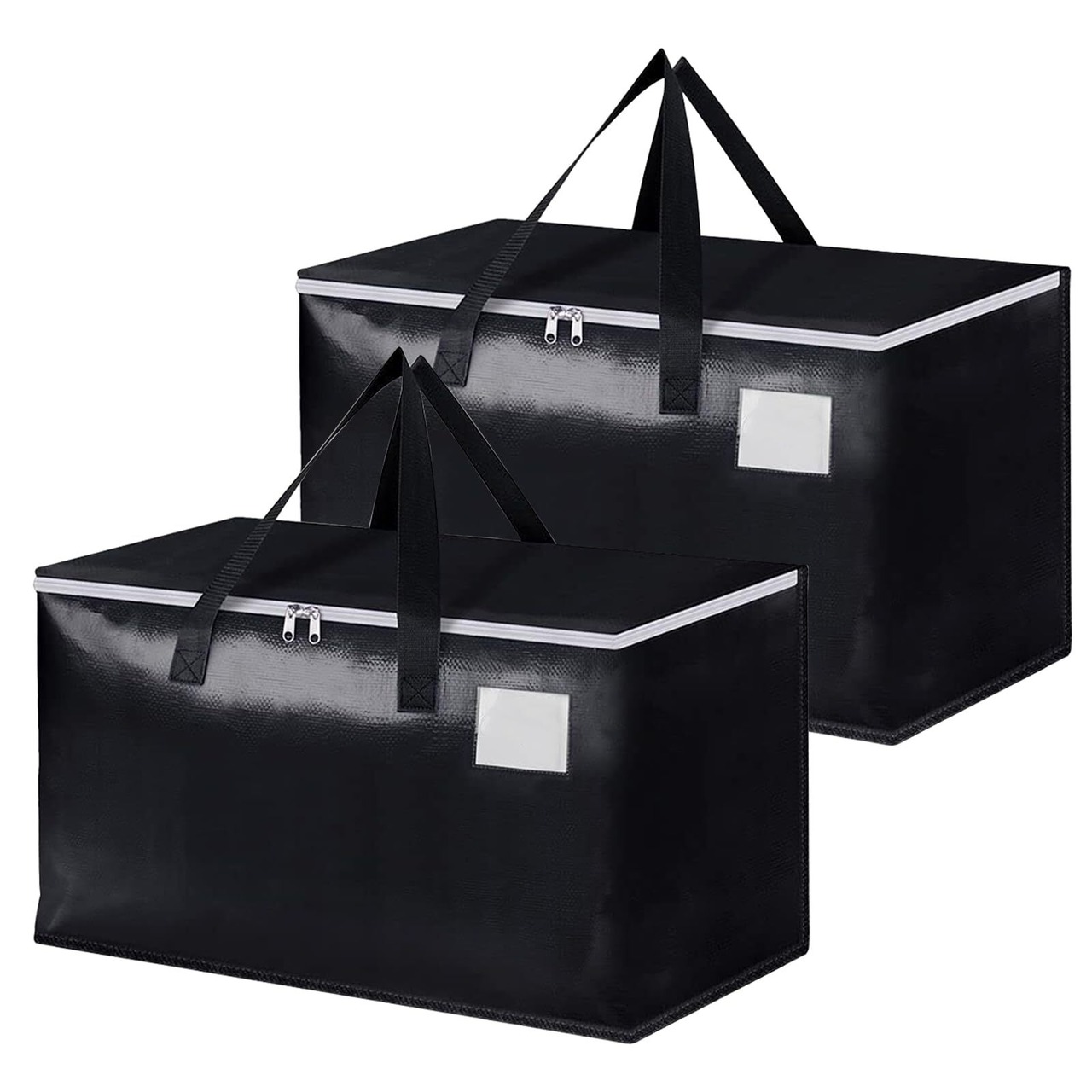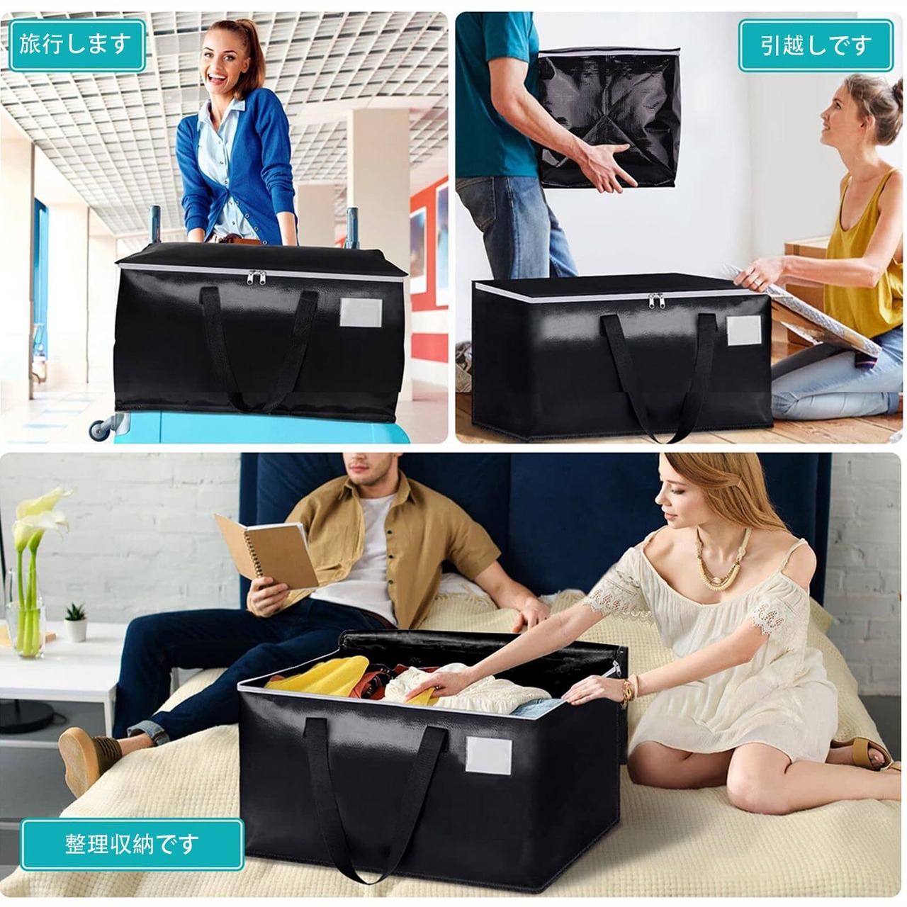 布団収納バッグ 特大 布団収納ケース 持ち手付きふとん収納袋 大容量引っ越しバッグ 折りたたみ式掛け布団収納袋 スボーツ アウトドア キャンプ 旅行 衣類収納袋(ブラック色 2枚組)