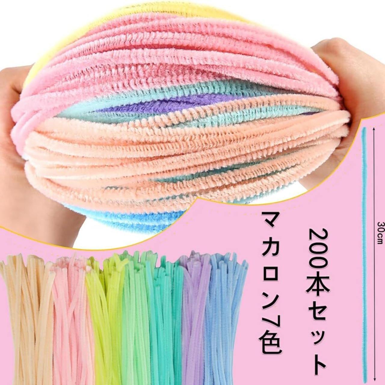 LIKENNY 手芸モール 工作モール 7色混色200本 カラフル シェニール・スティック 骨格モール クリスマスツリー飾り DIY飾り物 子供知育玩具 手作り素材 学校 手芸用(マカロンカラー)