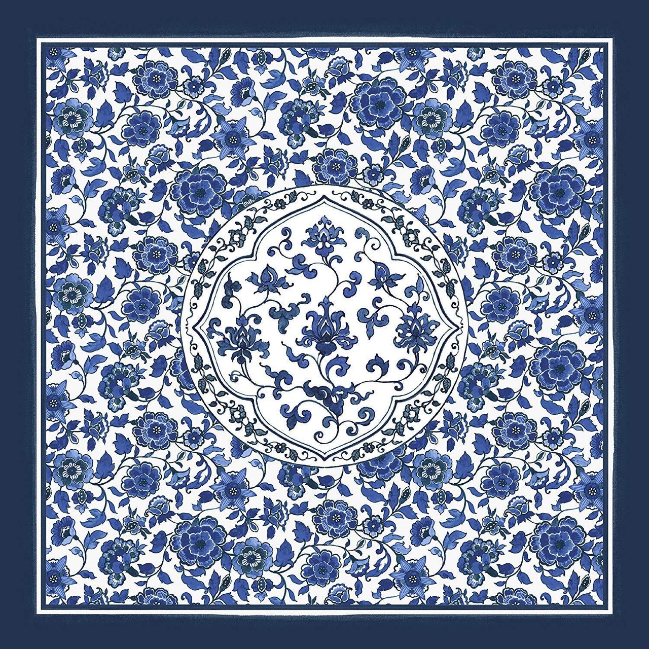 朝倉染布 風呂敷 - 約96×96cm 朝倉染布 超撥水風呂敷ながれ 平織 染付更紗 1-5