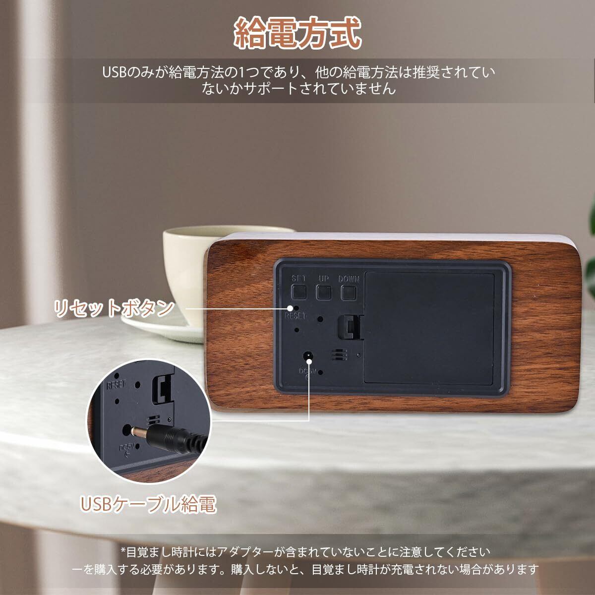 デジタル目覚まし時計 木製置き時計 LED時間表示3目覚まし時計設定 USB給電 き湿度と温度検出電子時計、寝室、ベッドサイドテーブル、机、オフィス、子供、家族に適しています (ブラウン)