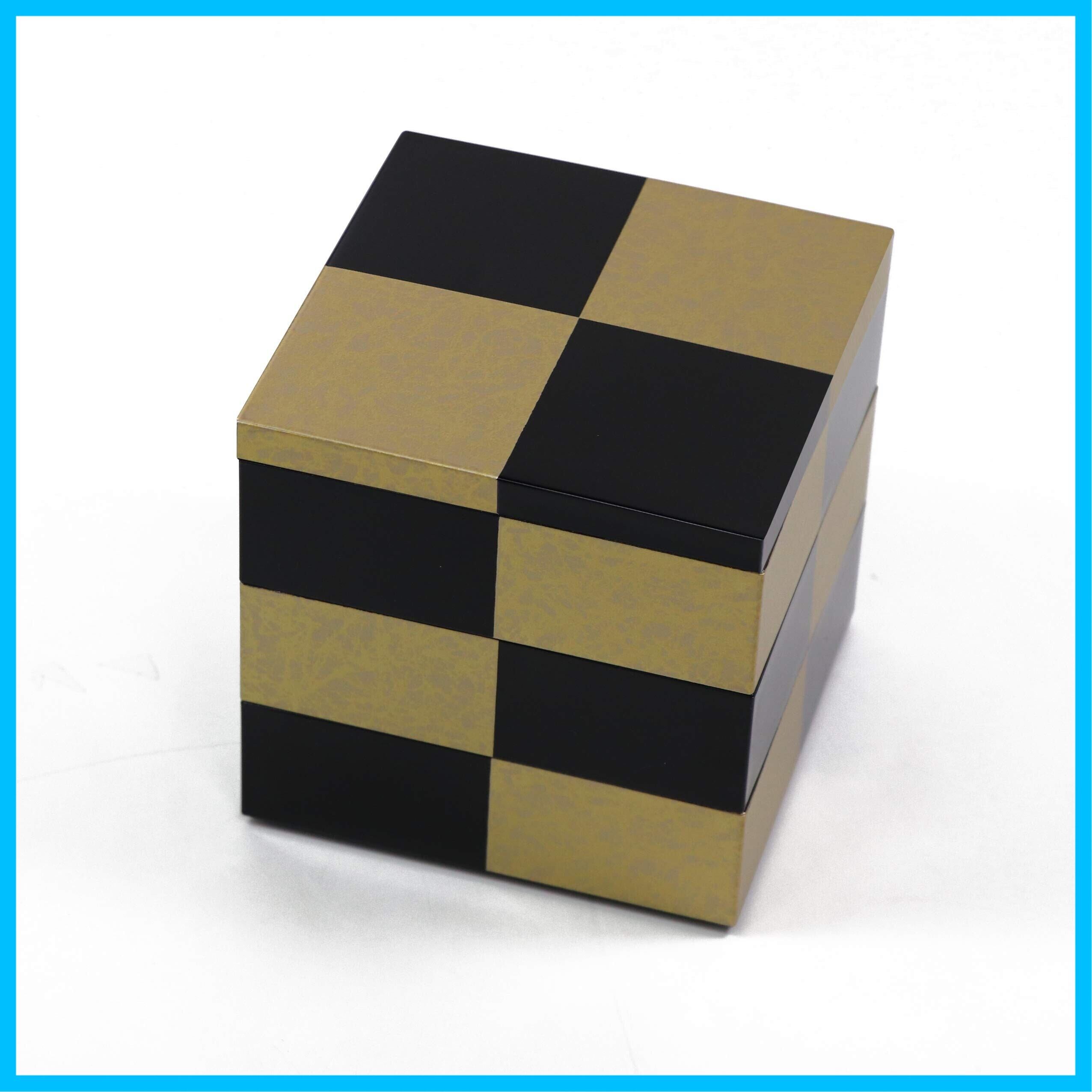 大阪 長生堂 重箱 市松GOLD 3段 12cm 黒 山中塗 オリジナル 保冷バッグ 特典付 運動会 おせち お重