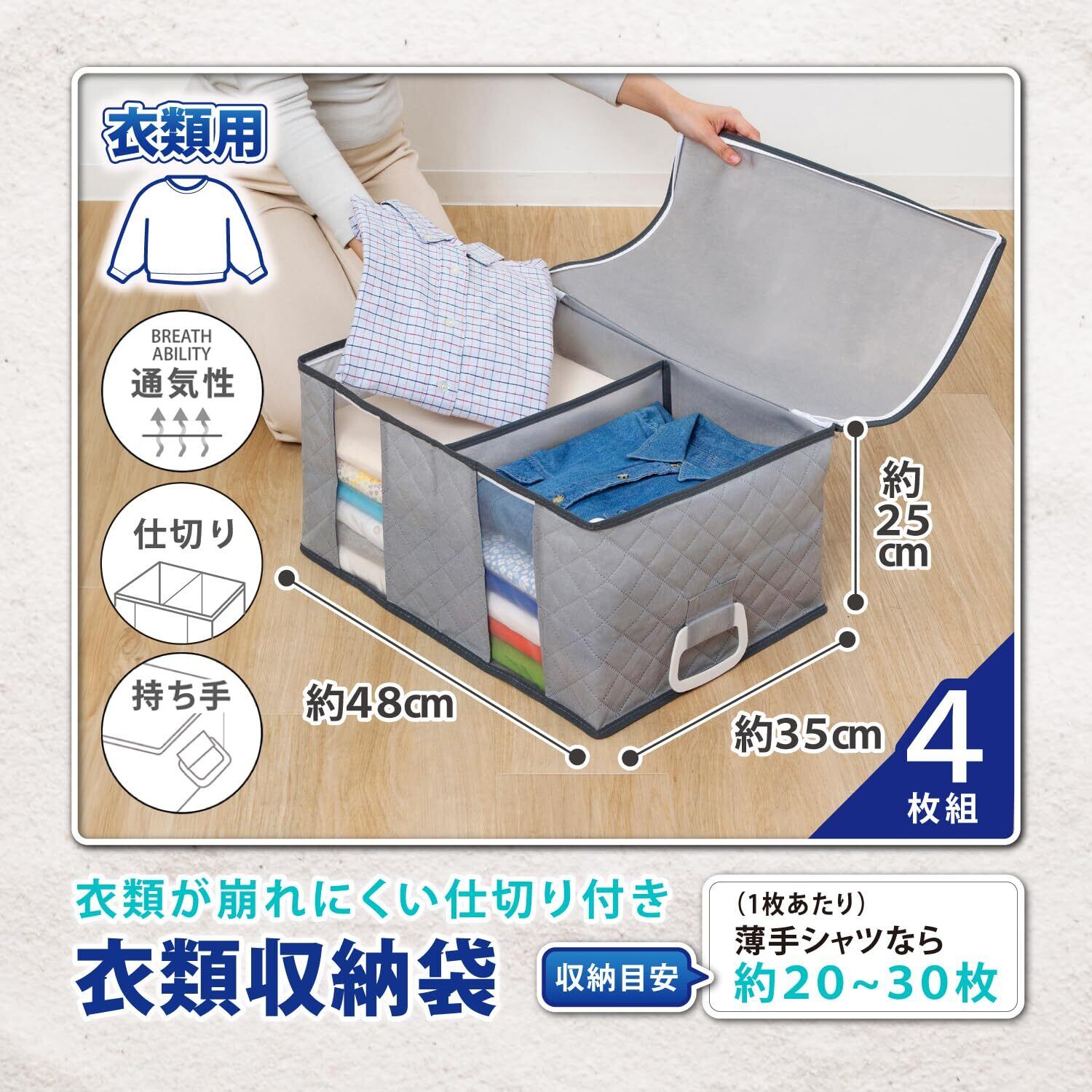 アストロ 収納ケース グレー 4枚組 衣類用 仕切り 持ち手付き 衣類収納袋 通気性の良い不織布がホコリなどの汚れをガード 仕切り付きで衣類が崩れにくい 持ち運びしやすい洋服 収納ボックス 衣装ケース クローゼット 押し入れ収納 179-07