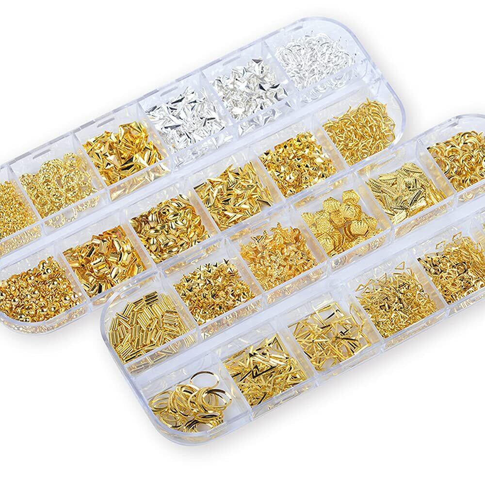 YFFSFDC ネイルパーツ 3本セット 金属パーツ ネイルデザイン アクセサリー デコパーツ 四角 三角 丸 パール フレークパーツ ネイルアート ネイルスタッズ ネイル デコレーション ゴールドネイルパーツセット (A)