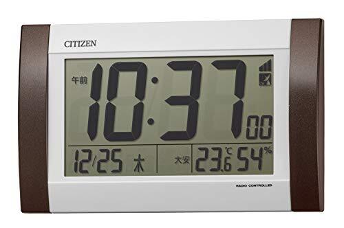 リズム(RHYTHM) シチズン 掛け時計 目覚まし時計 電波時計 デジタル R188 置き掛け兼用 カレンダー 温度 ・ 湿度 表示 茶 24.0×14.8×3.1cm CITIZEN 8RZ188-006