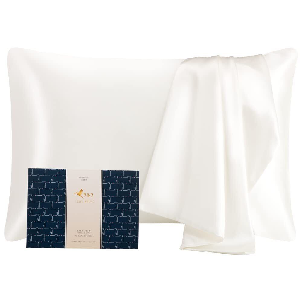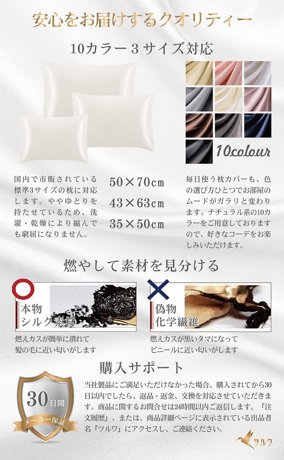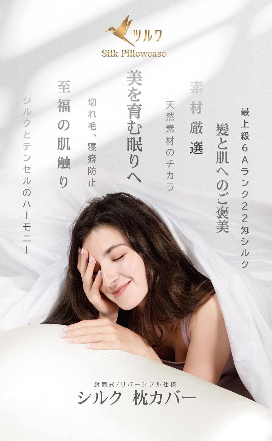 ツルワ シルク枕カバー 6Aクラスシルク100% 22匁 片面シルクタイプ テンセル 封筒式 洗える シルクピローケース 摩擦軽減 美肌 美髪 快眠 寝癖防止 肌に優しい ( アイボリー 43×63cm )