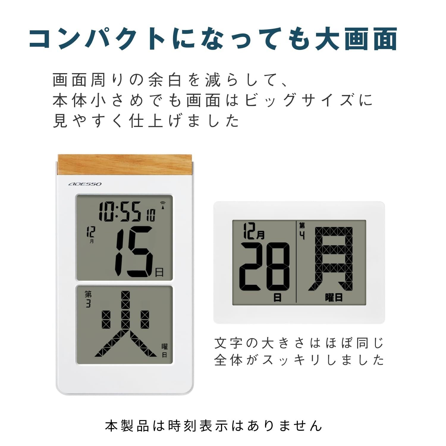 ADESSO(アデッソ) メガ曜日電波日めくりカレンダー デジタル日めくりカレンダー デジタルカレンダー 大画面 横型 認知症 高齢 壁掛け カレンダー 大型 置き掛け兼用 日付表示 ホワイト おしゃれ