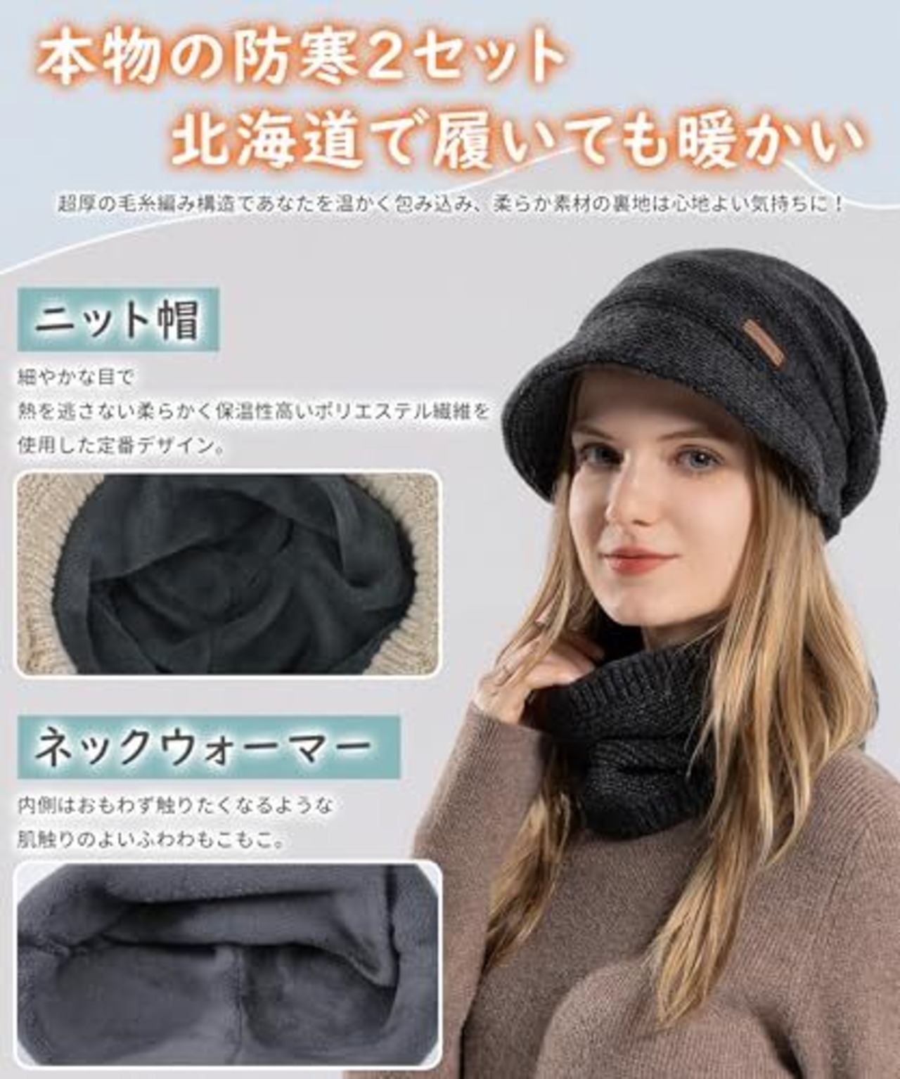 【商品仕様】セット内容:定番なつば付きニット帽+極厚雲感裏パイルのネックウォーマーの暖か2点セットです。(帽子 ツパの長さ:5cm,頭囲:55-60cm,深さ:19cm) (ネックウォーマー平置 縦:20cm, 横幅:22cm) 。フリーサイズ!2点セットだからどんな寒さにもしっかりと防寒。北海道で履いても暖かい!!!