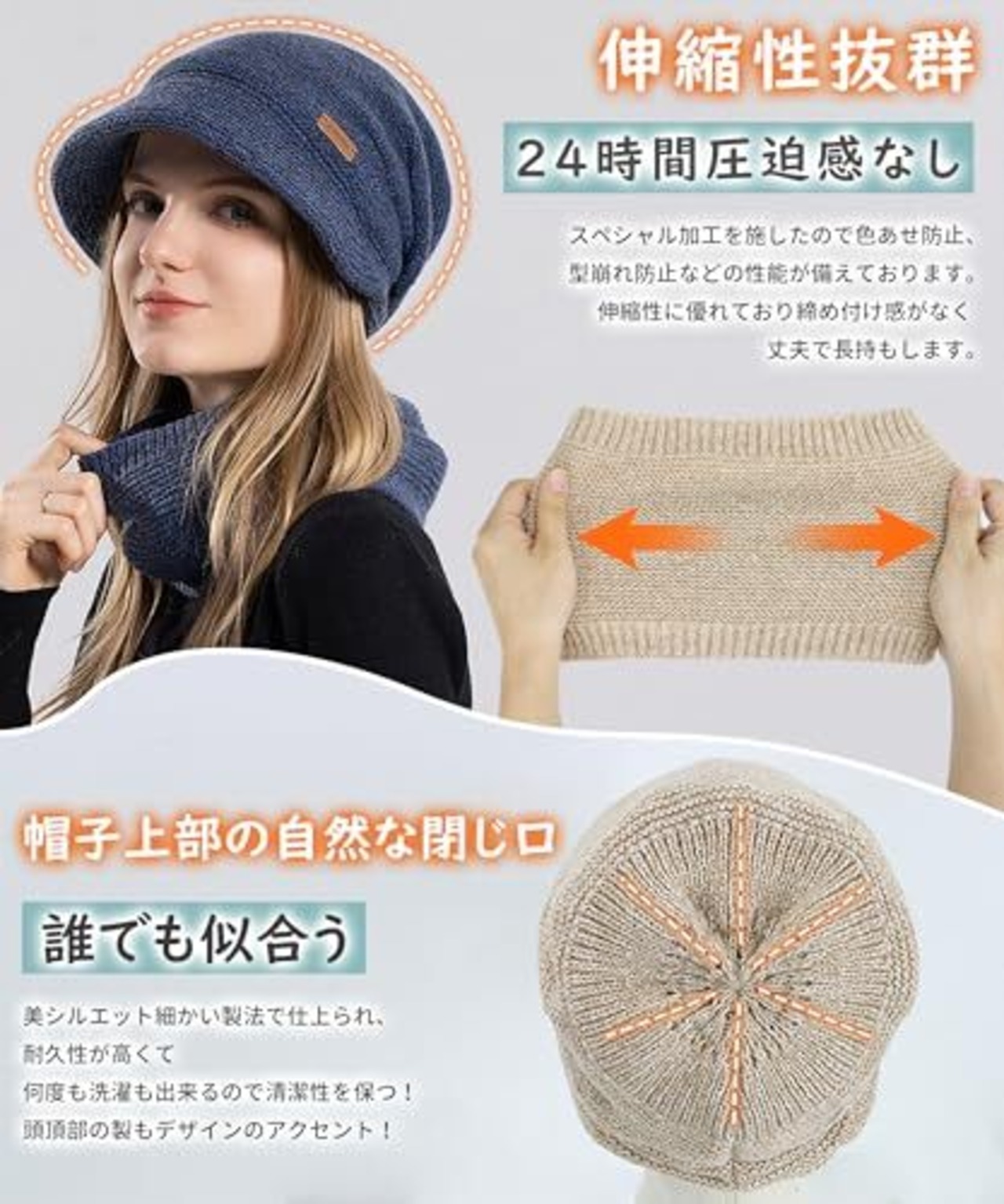【定番なつば付きニット帽・型崩れを防ぎます】ニット帽は表地は高品質の伸縮性ニット編み縫製で、最大限の保温性と耐久性が追加して、防寒保温性に優れます。この帽子は大きなツバが前方に広がっている設定になっていますので、前、側からも顔が小さく見える!ニット帽の後ろには素材を贅沢に使用しており、よく伸びて動きやすい、長時間つけても窮屈感がなく、ゆったりとつけられるサイズ感。24時間ストレスフリーな快適感を演出します。かぶりやすくて暖かい、縫製がしっかりして丈夫で長持ちします。