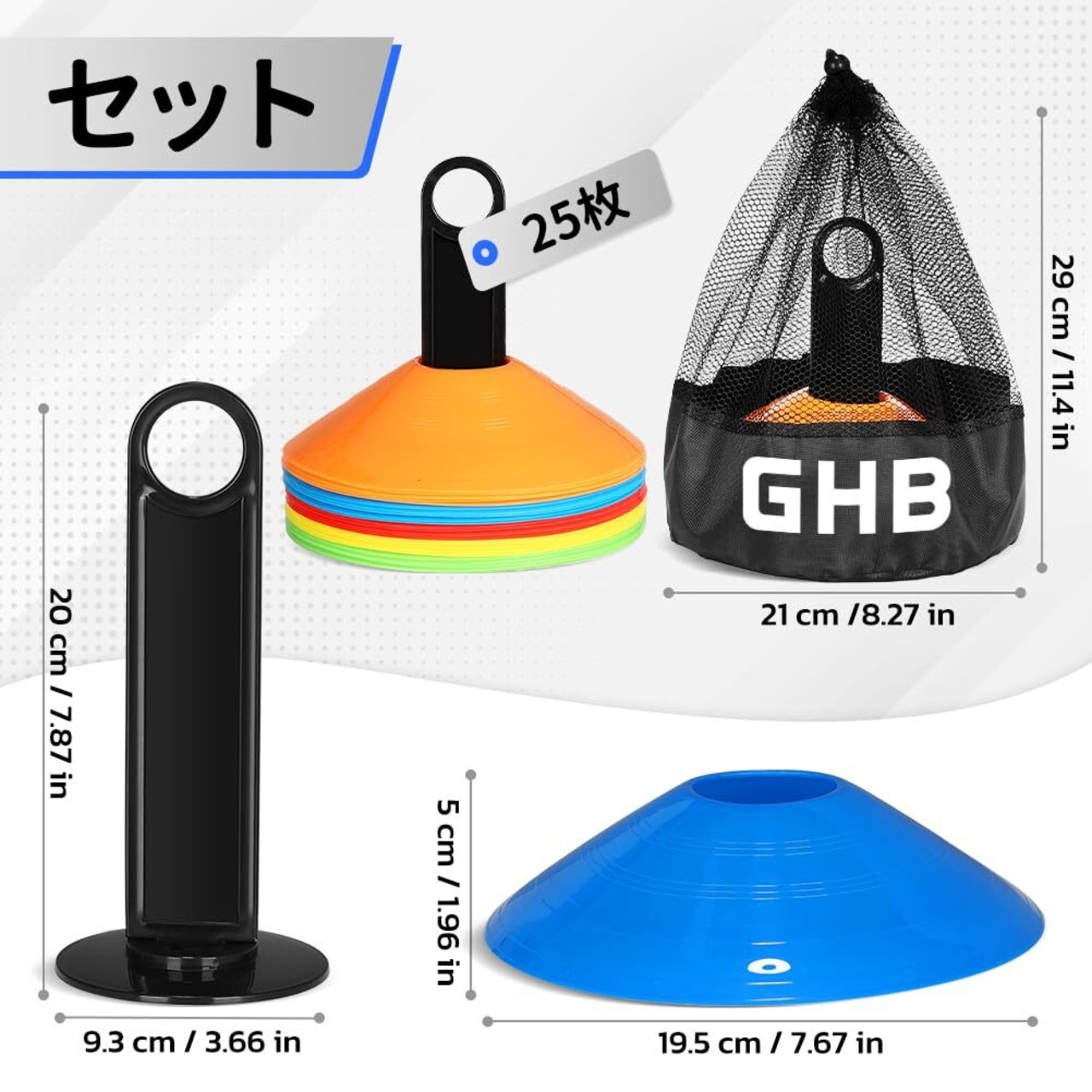 GHB マーカーコーン トレーニングコーン サッカー コーン カラーコーン 25枚セット ドリブルマーカー 5色あり(各色5枚) 野球 テニス 練習道具 スタンドや収納袋が付き