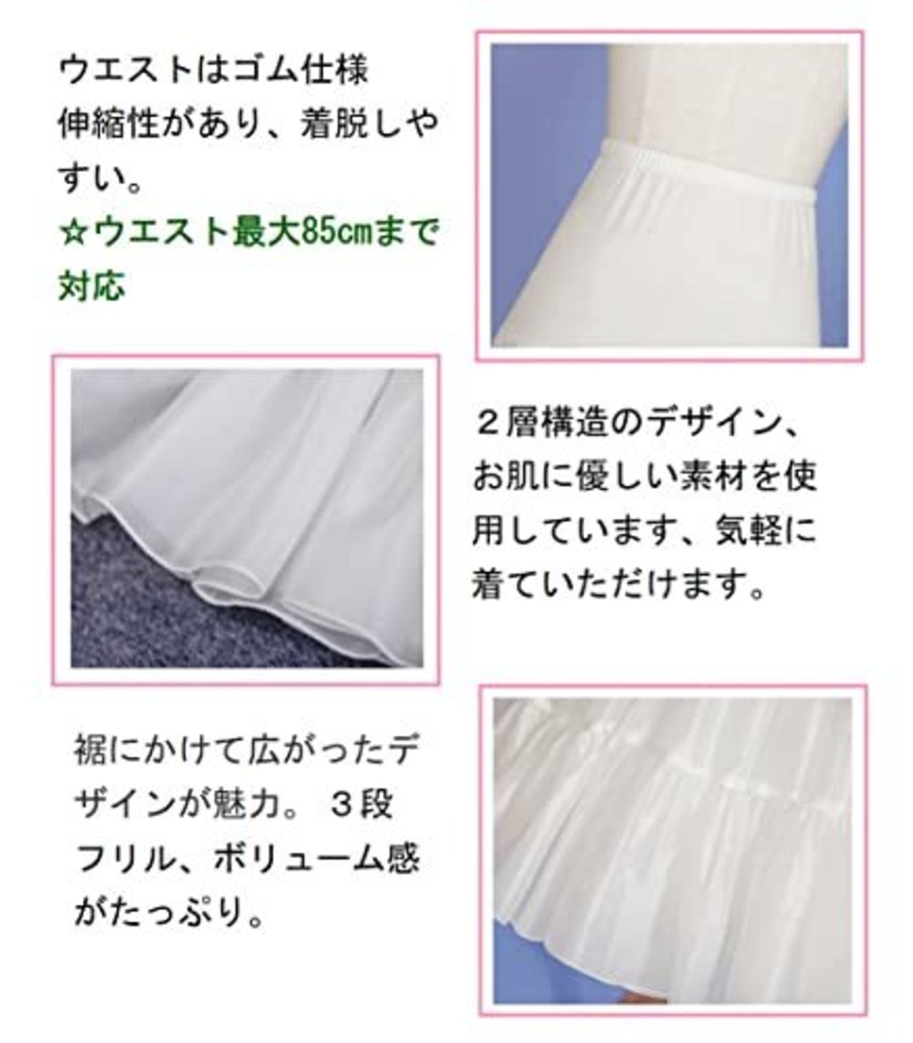 メイド・仮装・ロリータの衣装・ドレス・スカートのボリュームを出すための必須アイテム。