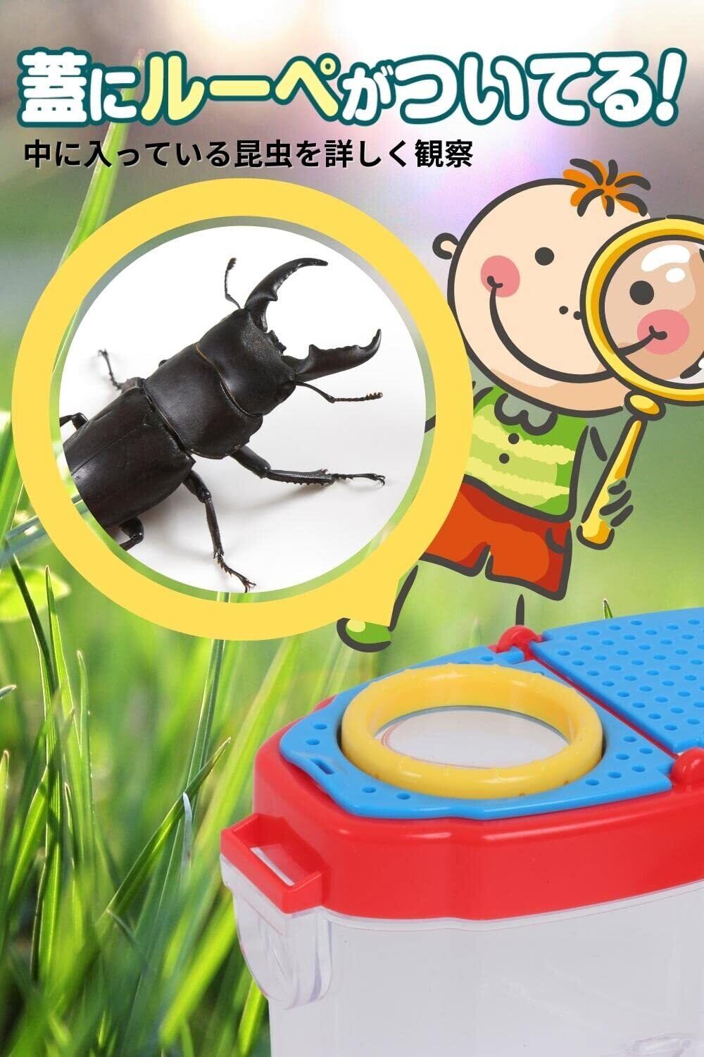・蓋にルーペが付いており、中に入っている昆虫を詳しく観察できる仕様となっております。
