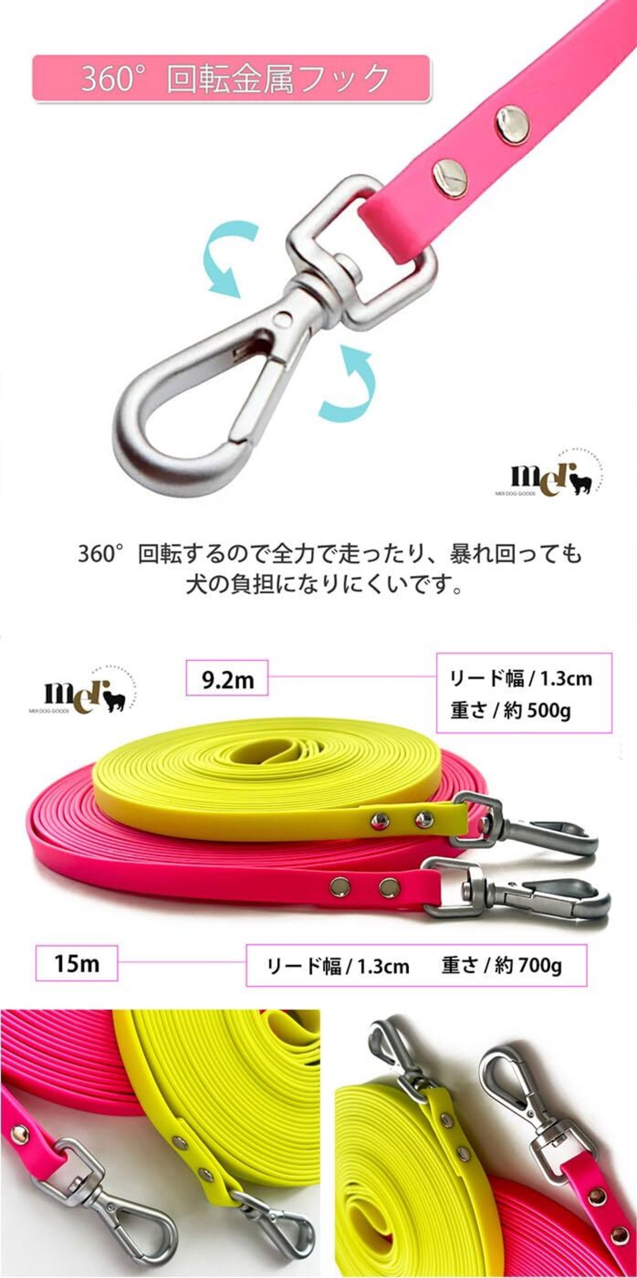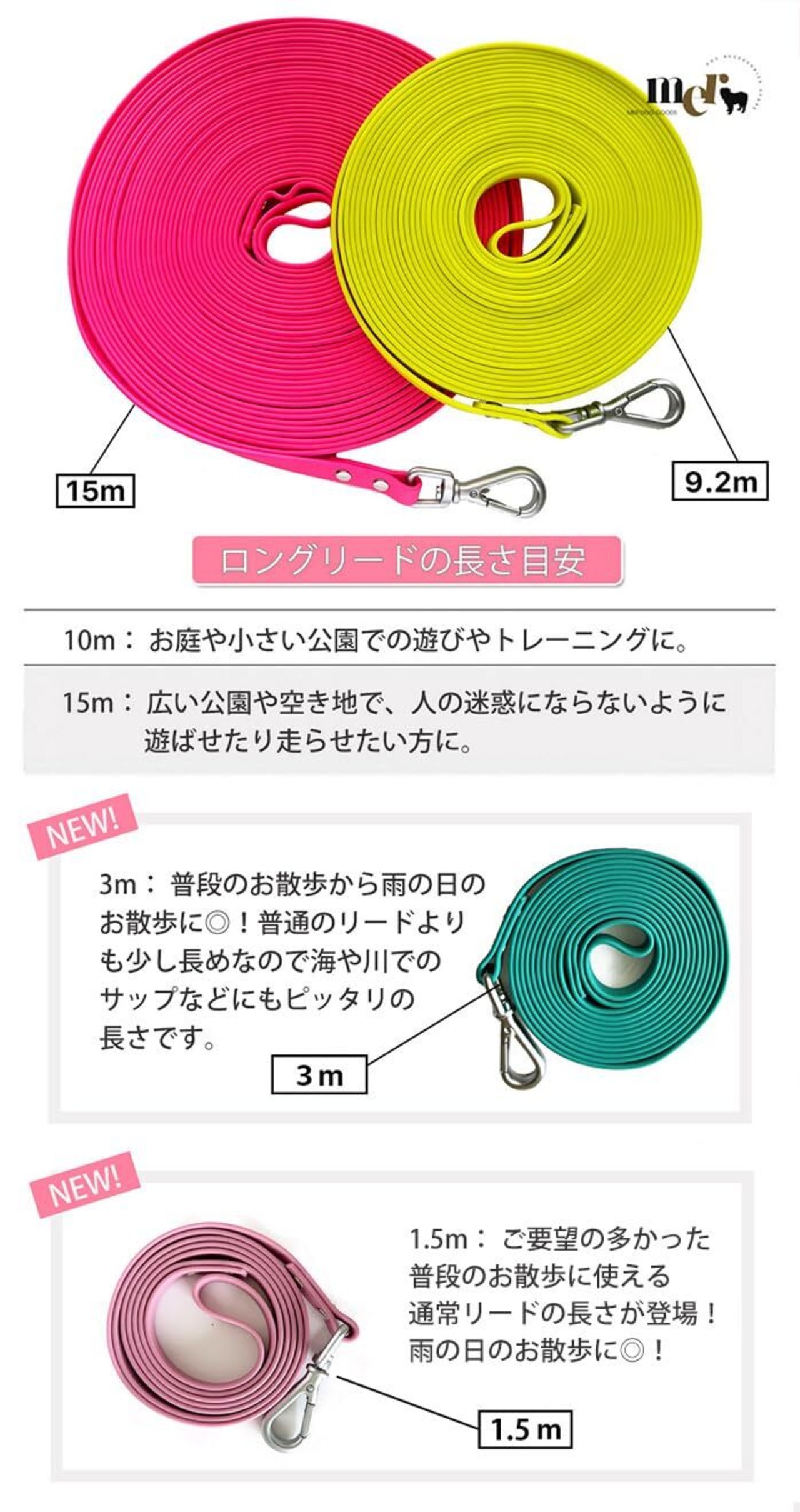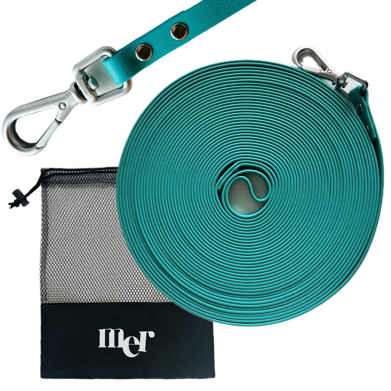 Mer Dog Goods (WOD) 犬用 PVC ロングリード 3m/9.2m/15m 防水 ペット リーシュ ウォータープルーフ 小型犬 中型犬 大型犬 (ターコイズ, 15m)