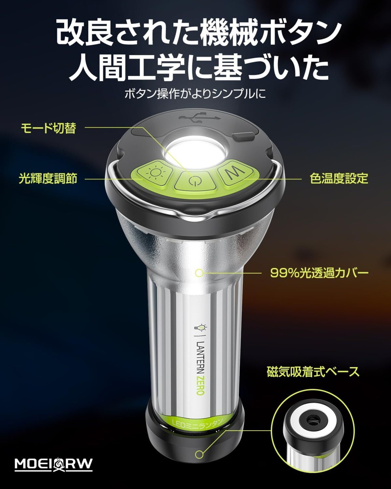 【1年の保証・充実のパッケージ内容】この製品は1年間の品質保証が付いており、何か問題が発生した場合はいつでもお気軽にご連絡ください。迅速かつ日本語で対応いたしますので、心から安心してご購入いただき、楽しい体験をお楽しみください。ちなみに、製品自体や説明書以外に、製品の包装に追加の物が混入していた場合、お気軽にご連絡ください。①Led ミニランタン本体が1本②取り外し可能ランプシェード1個③Type-C 急速充電ケーブル1本④アウトドア用防水収納袋1個⑤日本語取扱説明書1冊