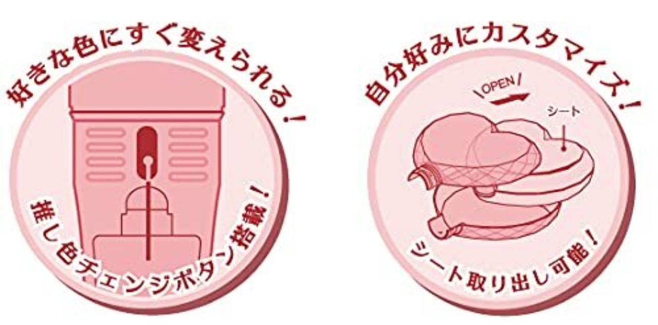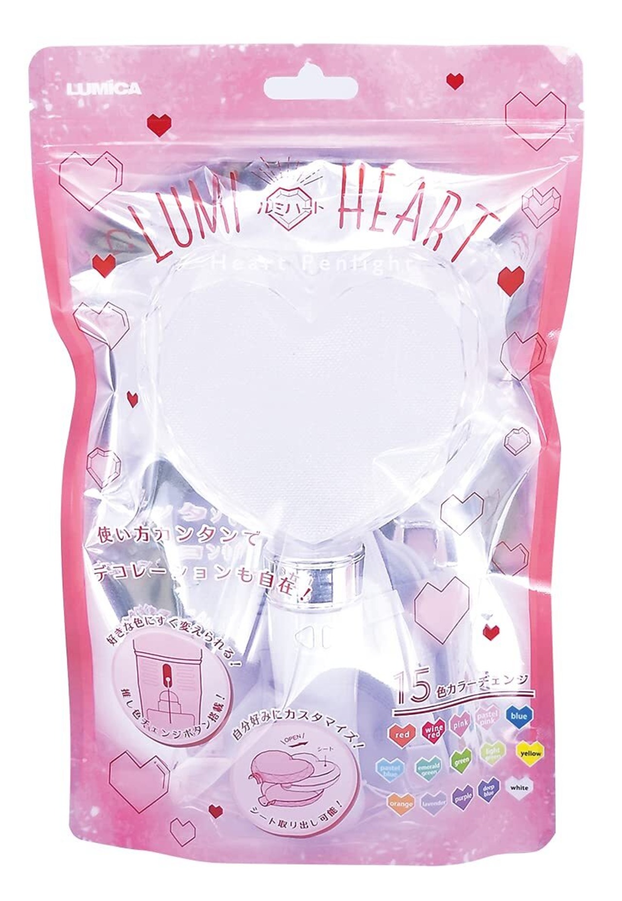 発光部分(トップパーツ)がハート型になっている、 かわいらしいコンサートライトです。15色のカラーチェンジタイプ。