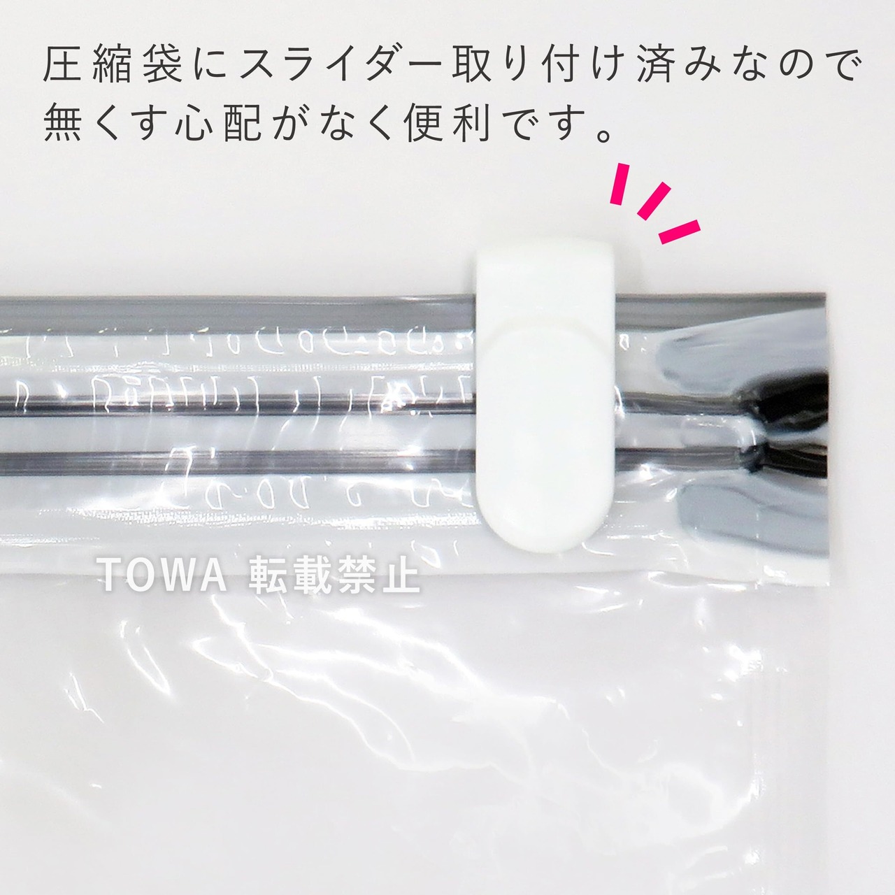ワイドチャックでふとんを簡単に圧縮できます