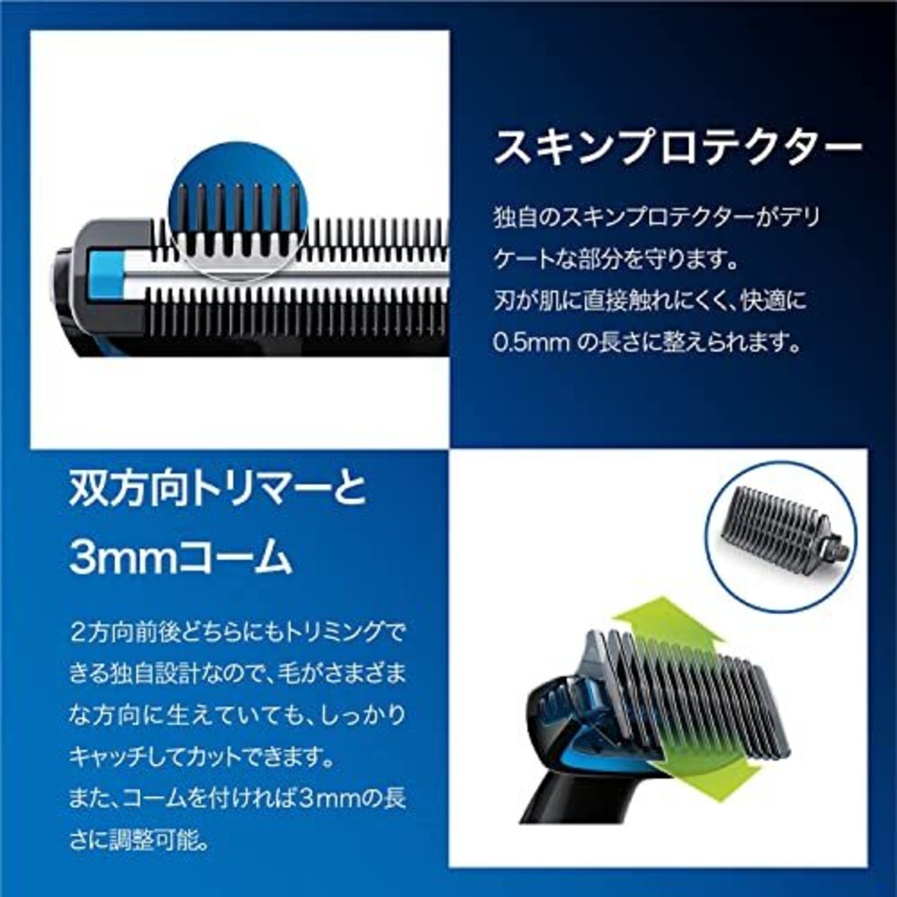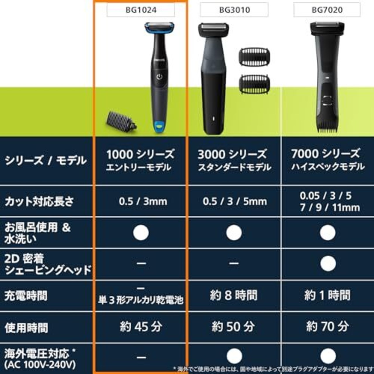 フィリップス ボディ トリマー 1000シリーズ ボディーシェーバー グルーマー (お風呂使用可(カラダ用)乾電池式) BG1024/17 ブラック/ブルー