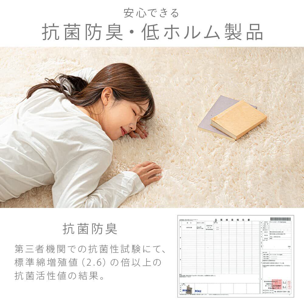 材質 表地:ポリエステル100%、カットパイル毛足長さ:20mm、裏地:不織布(PVC滑り止め加工)、詰め物:ウレタンフォーム(10mm)