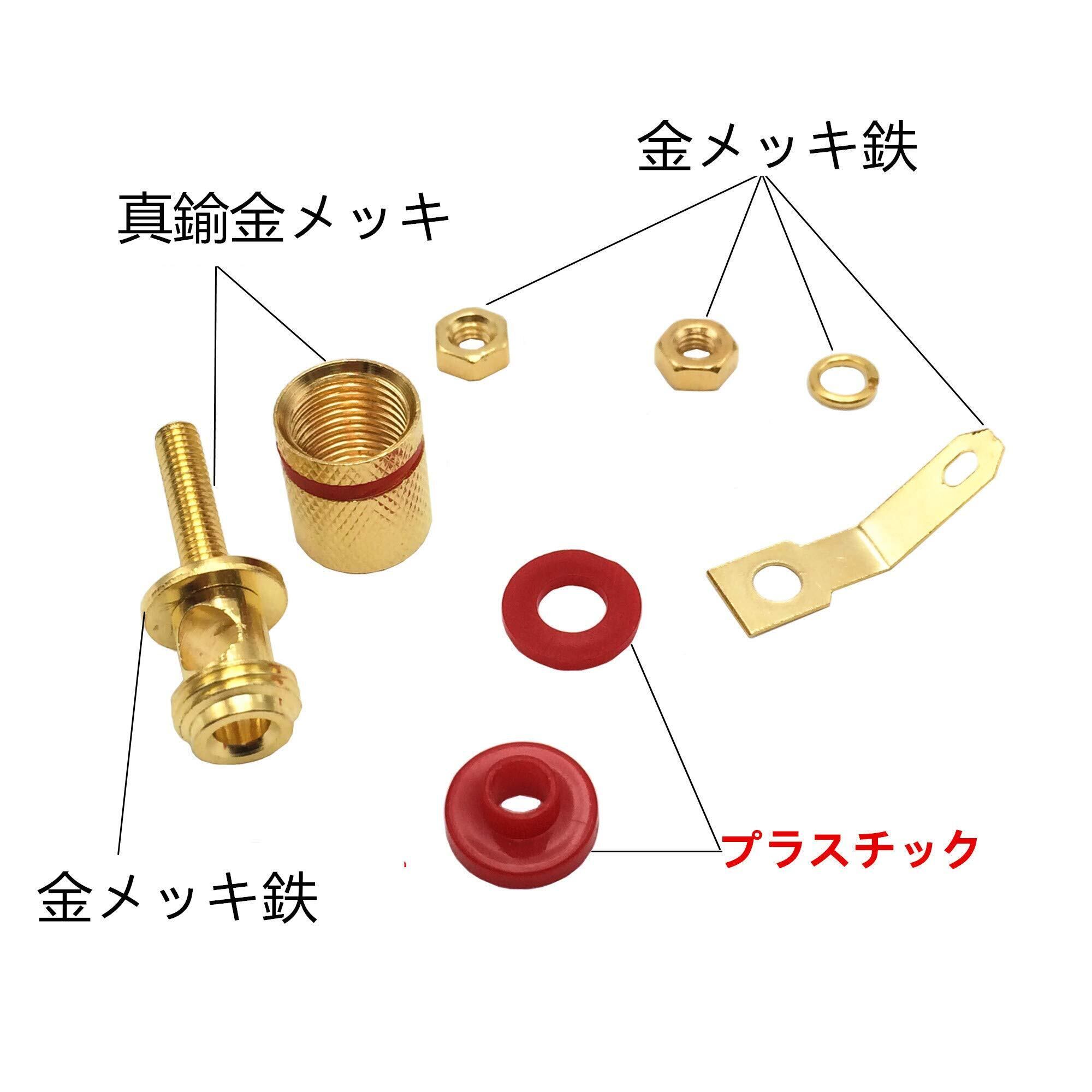 GeeSo 8個 34.5mm 真鍮 金メッキ スピーカーターミナル バインディング ポストバナナプラグ対応 赤4 黒4 配線接続