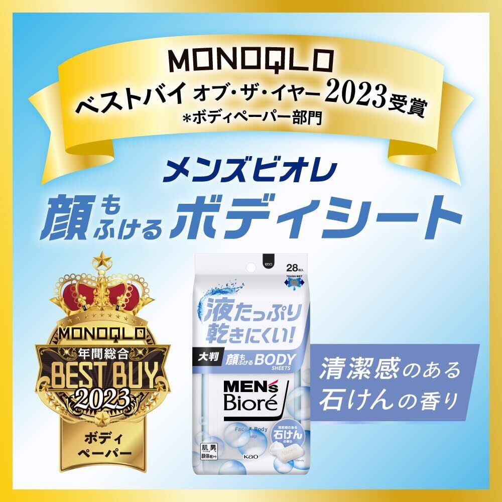 メンズビオレ【まとめ買い】顔もふけるボディシート 清潔感のある石けんの香り 28枚入×3個 破れにくい ・ 乾きにくい ・ 丸まりにくい 独自開発の「タフテックシート」採用