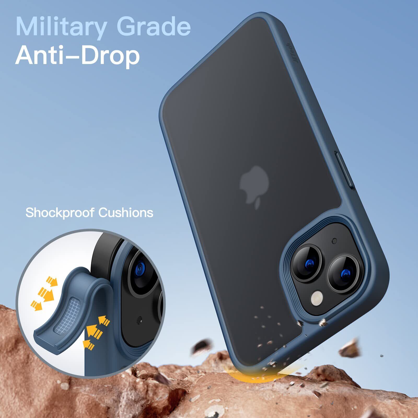 JETech マットケース iPhone 14 6.1インチ用 耐衝撃性ミリタリーグレードの落下防止 つや消しの半透明の背面電話カバー 指紋防止 (ストームブルー)
