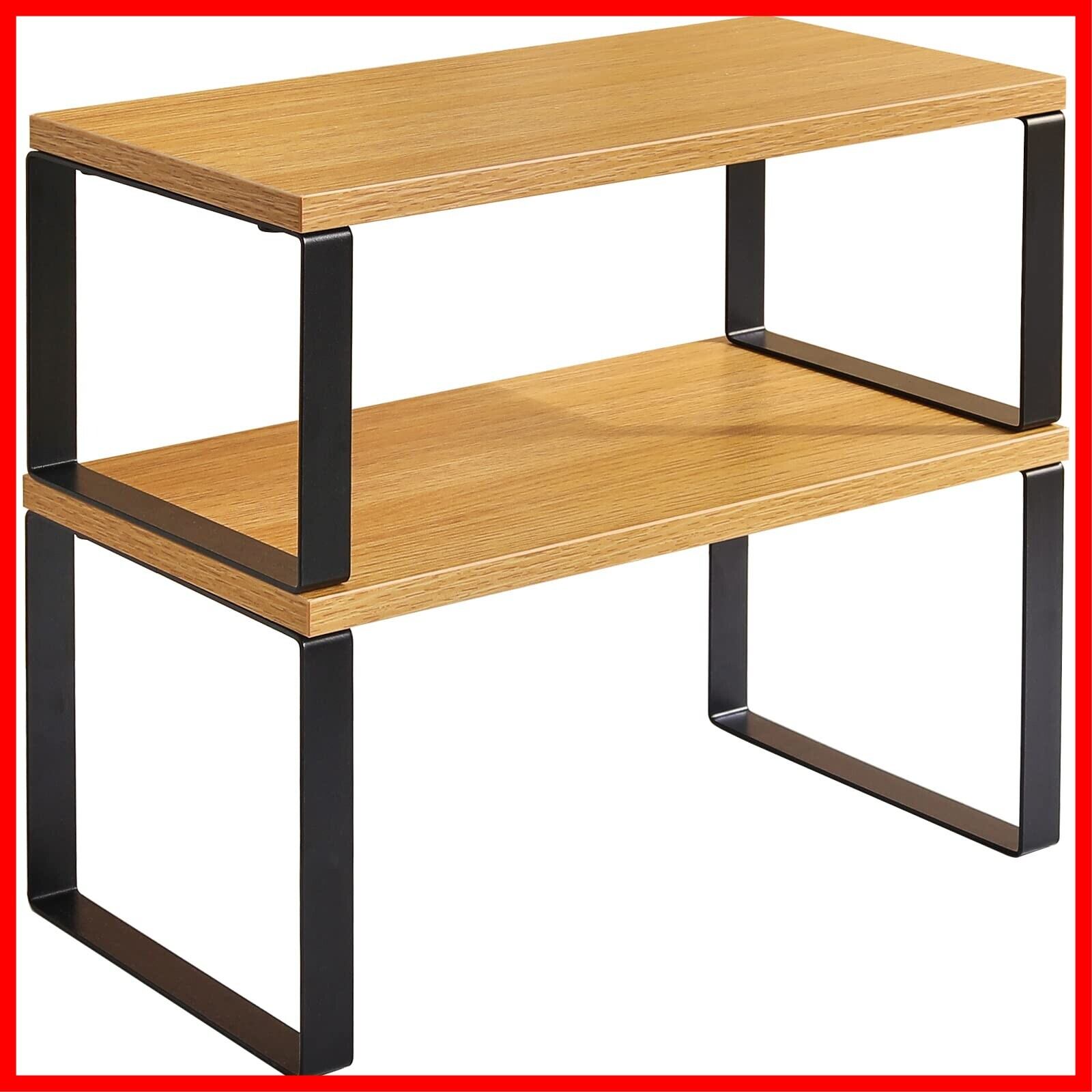 YMYNY キッチンラック 2個入 調味料ラック スパイスラック カウンター棚 積み上げ可能 拡張可能 キャビネット収納ケース 水槽 化粧品 缶 カップ 浴室 台所 卓上 大容量 木の色 JPHSR002N