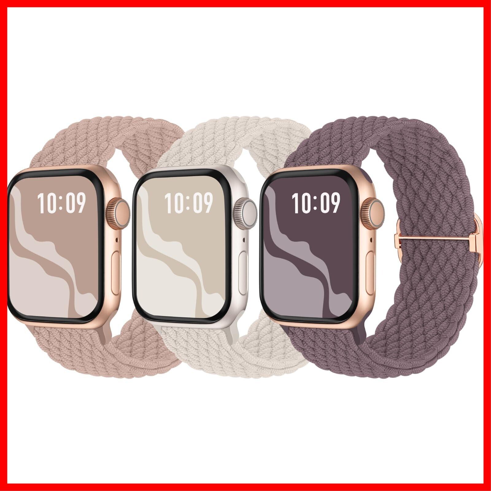 【3枚入り】Suitisbest コンパチブル アップルウォッチ バンド 編み込み 42mm 41mm 40mm 38mm Apple Watch ナイロンバンド 伸縮性 ゴム アップルウォッチ スポーツベルト Series 11 10 9 8 7 6 5 4 3 2 1 SEに対応 長さ無段階調整 柔軟 通気 防汗
