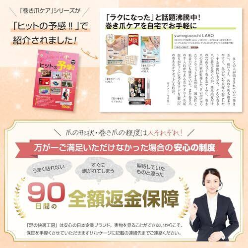 【巻き爪のプロ監修】累計3万人の施術実績のある巻き爪専門院「東京巻き爪センター」の院長が監修した自信作。<br/>【こだわりの曲面形状】研究を重ねてたどり着いた”足指にフィットする形”により剥がれにくさを実現。靴下の中でもご使用いただけます。