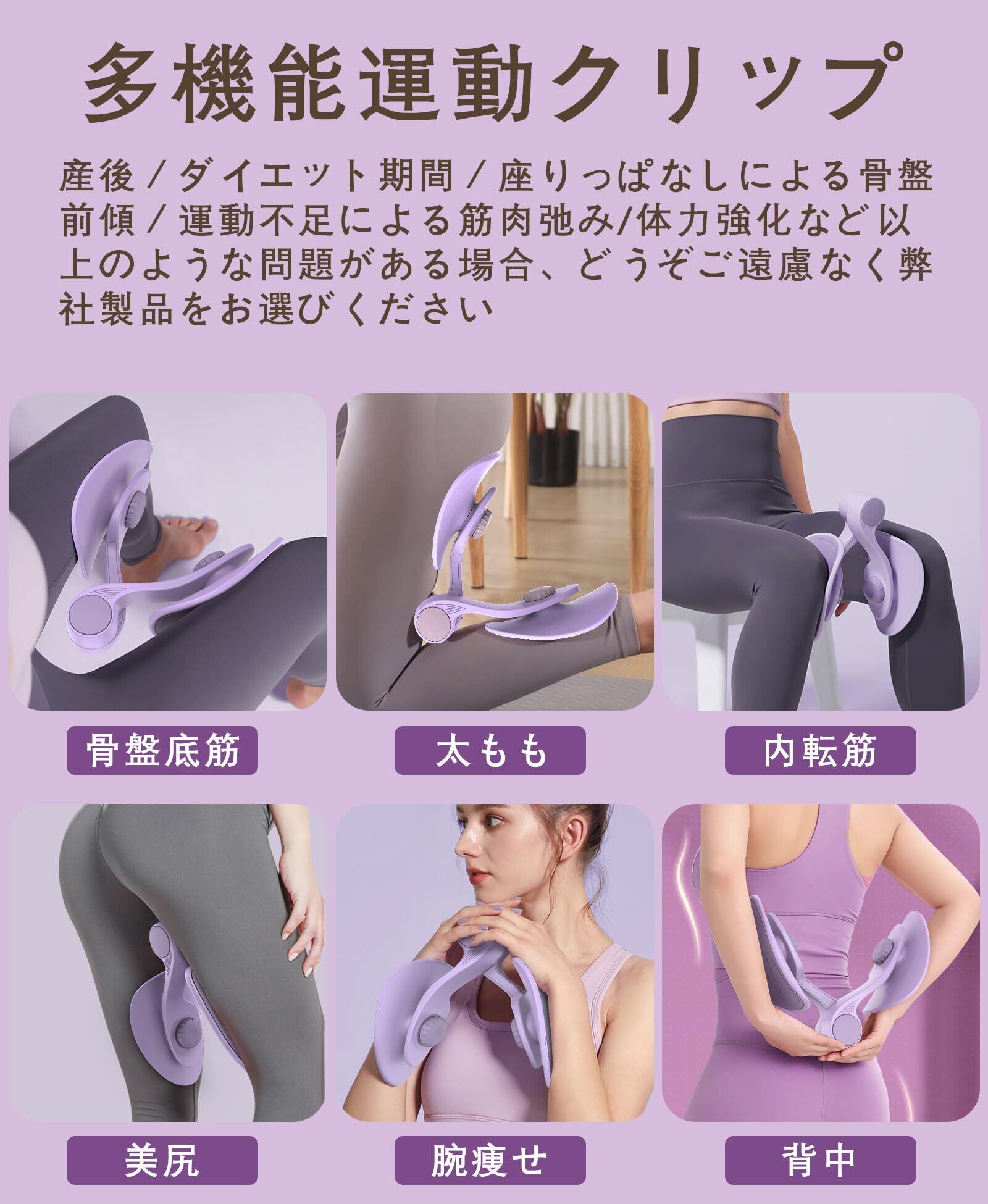 骨盤底筋 内転筋 トレーニング器具 張力21kg 骨盤ていきん ないてんきん トレーニング器具 太もも 筋トレ 痩せ レッググリップ 骨盤矯正 美尻 大腿筋力アップ 多機能運動クリップ ヒップアップ ダイエット器具 トレーニングバンドをお付けします 男女性 日本語説明書付き パープル
