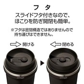 スライドフタをスライドさせることで飲み口の開け閉めをすることが可能
