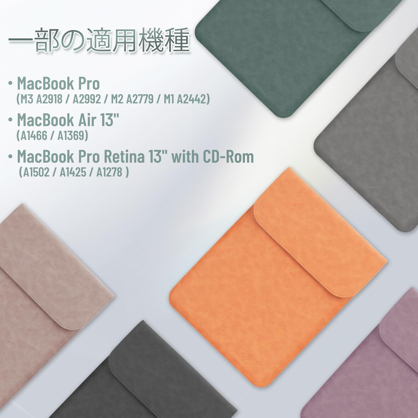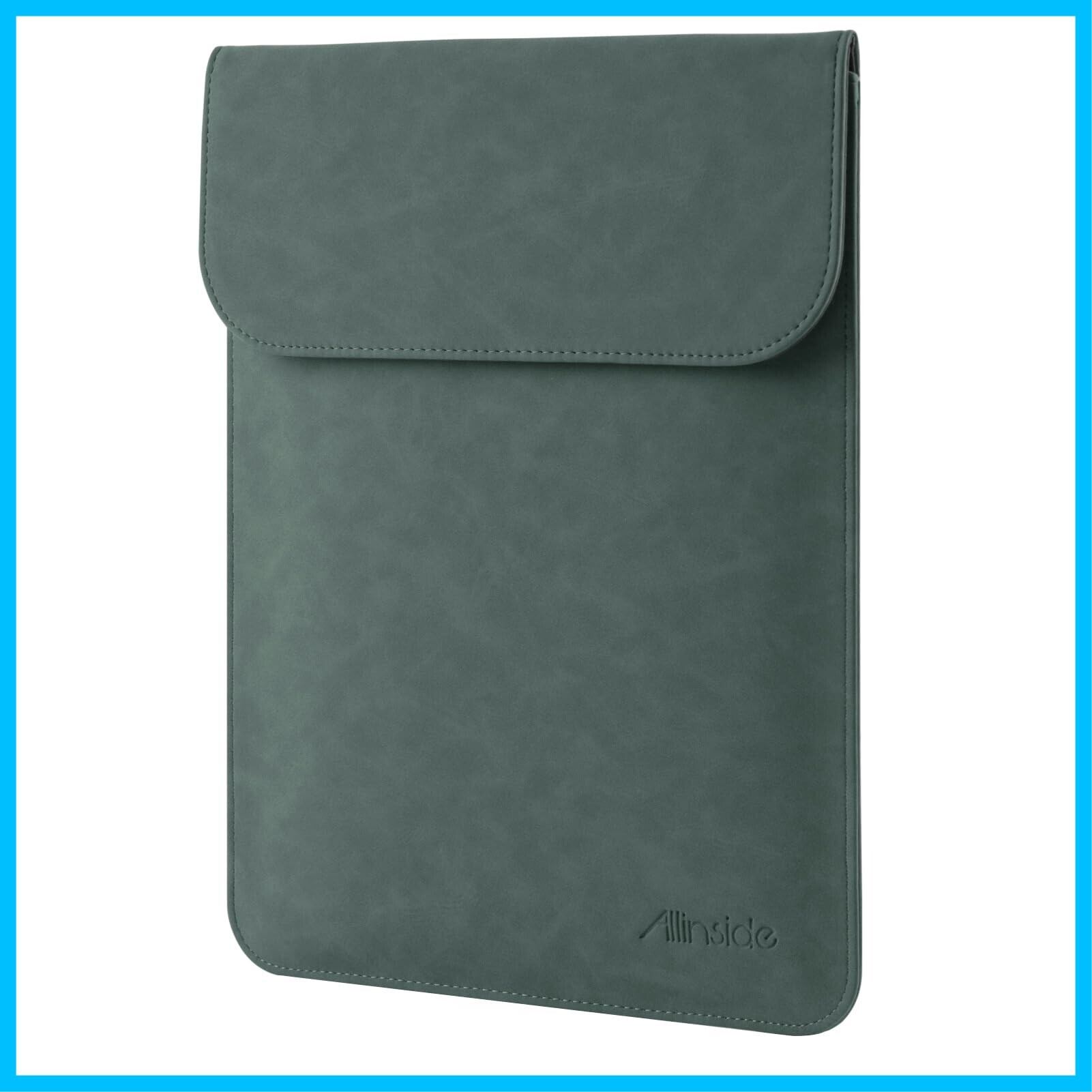 Allinside 13~13.3インチ ノートパソコン スリーブ ケース - 対応:MacBook Pro 14" 2021–2024(M1 M2 M3 M4 Pro/Max A2442, A2779, M3 A2918, M4 A3112, M4 Max A3185)/MacBook Air/Pro 13 2010–2017 合成革 ケース 薄型 PCインナーバッグ 防水,濃い緑色