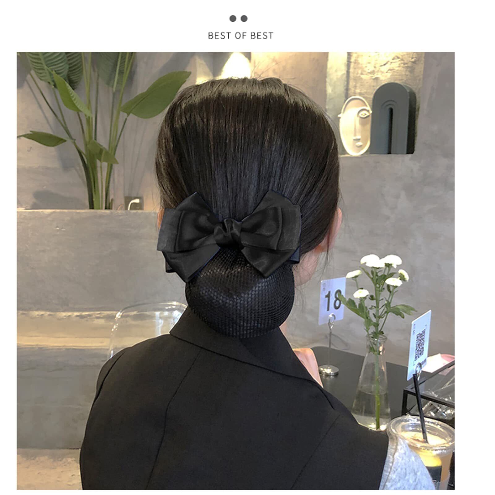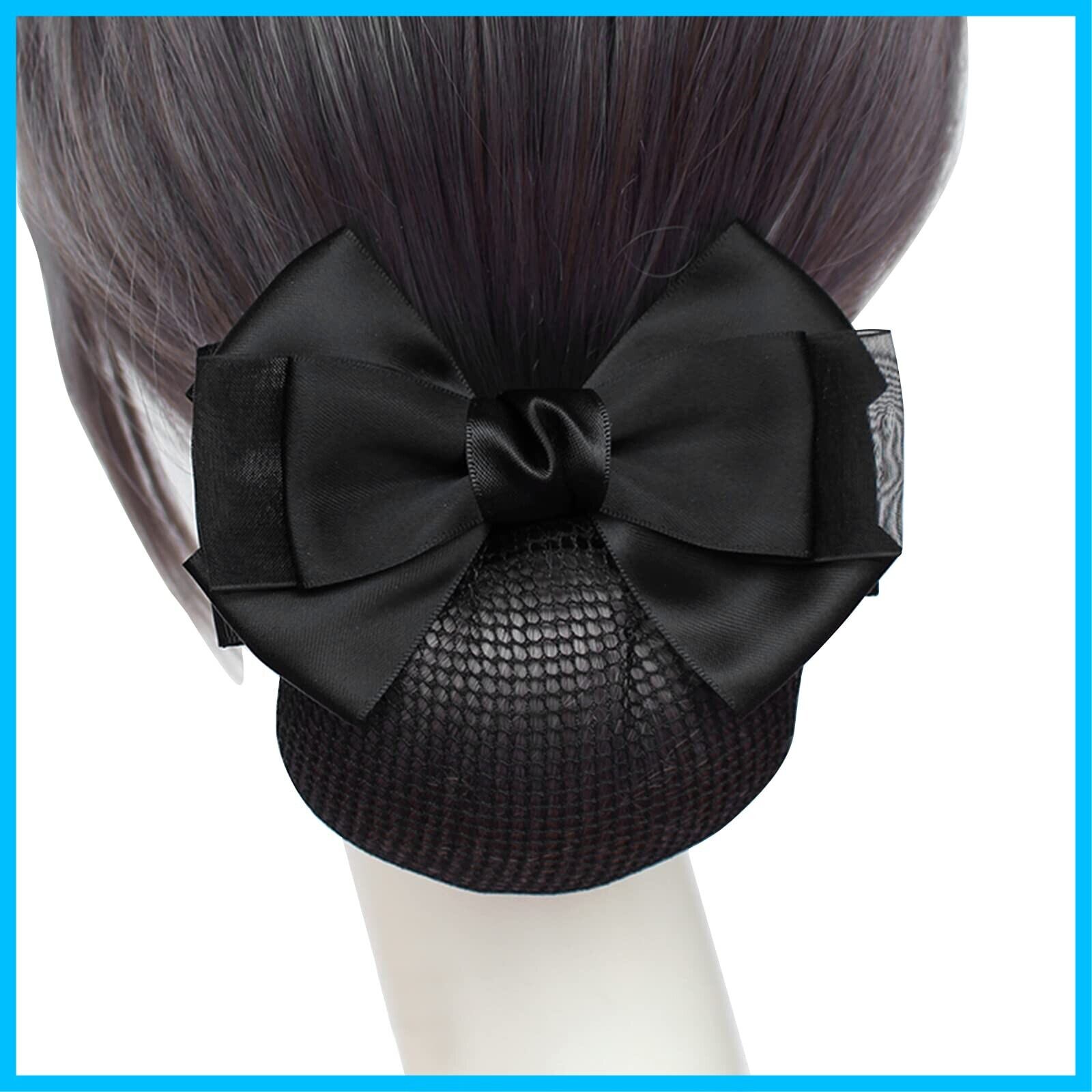 ALLMIRA シニヨン ネット バレッタ ネット付き おだんご ネット ヘアネット リボン お団子ネット 黒 ブラック 大きめ 髪ネット 髪留め ヘアアクセサリー レディース (ネクタイ ブラック)