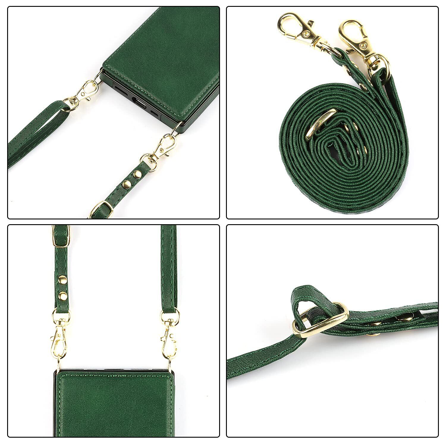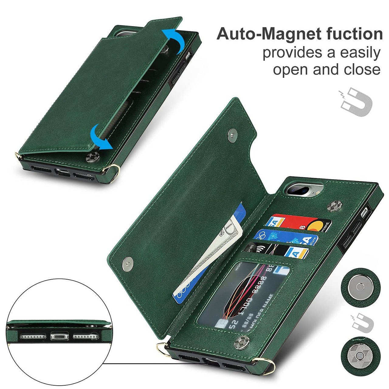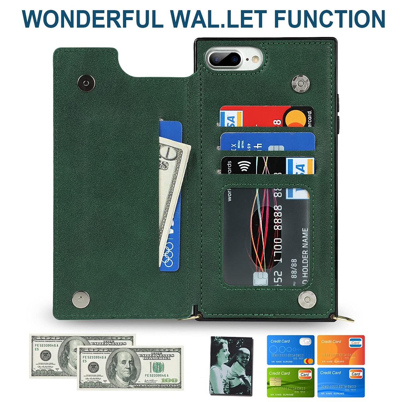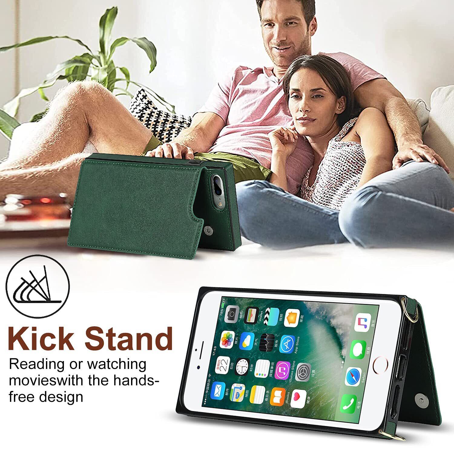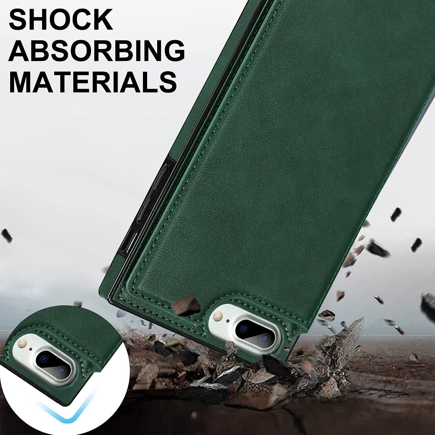 Cavor 手帳型ケースiPhoneSE 2世代(2020)/iPhoneSE 3世代(2022)/iPhone 7/用のケース ショルダー肩掛け 首かけ斜めがけ 落下防止case カード収納スマホ ケース【RFID機能】財布型 PUレザー磁気閉鎖付きの専属ストラップ同梱なのでQi急速充電対応 横置 ICカードホルダースリ防止対策 - ダークグリーン