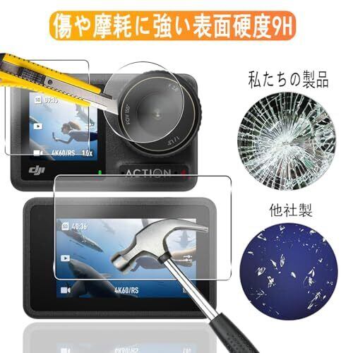 【9H強度&飛散防止】対応 DJI Osmo Action 4 強化ガラス 保護フィルムは日本旭硝子素材を採用します。 落下、スクラッチ、衝突、衝撃に高い耐久性があります 衝撃を最小限に抑えて画面の破損を抑え。カッターなどの鋭利なものを当たってもキズが付きにくくて高い強度を持ち表面硬度9Hが特徴です。特殊な飛散防止設計により、万一割れてしまった際にも飛散することなく、高い安全性を実現します。