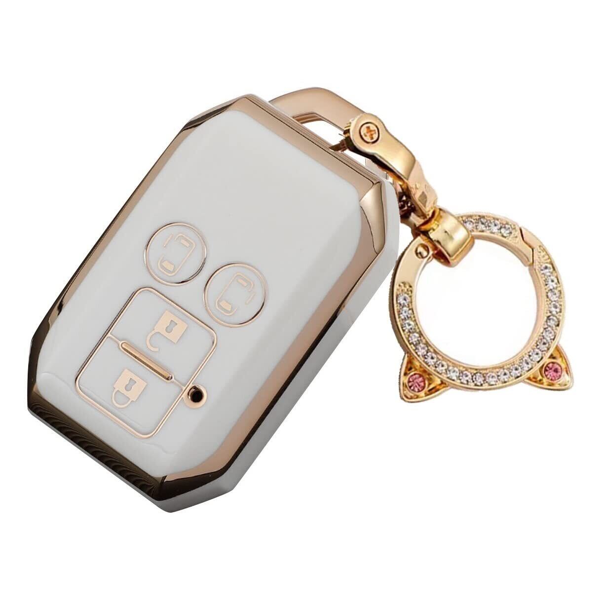 [ZANEKO] キーケース適合スズキ新型スペーシア スペーシアカスタム ソリオ フレアワゴン スマートキーケース キーカバー キーホルダー (ホワイト)