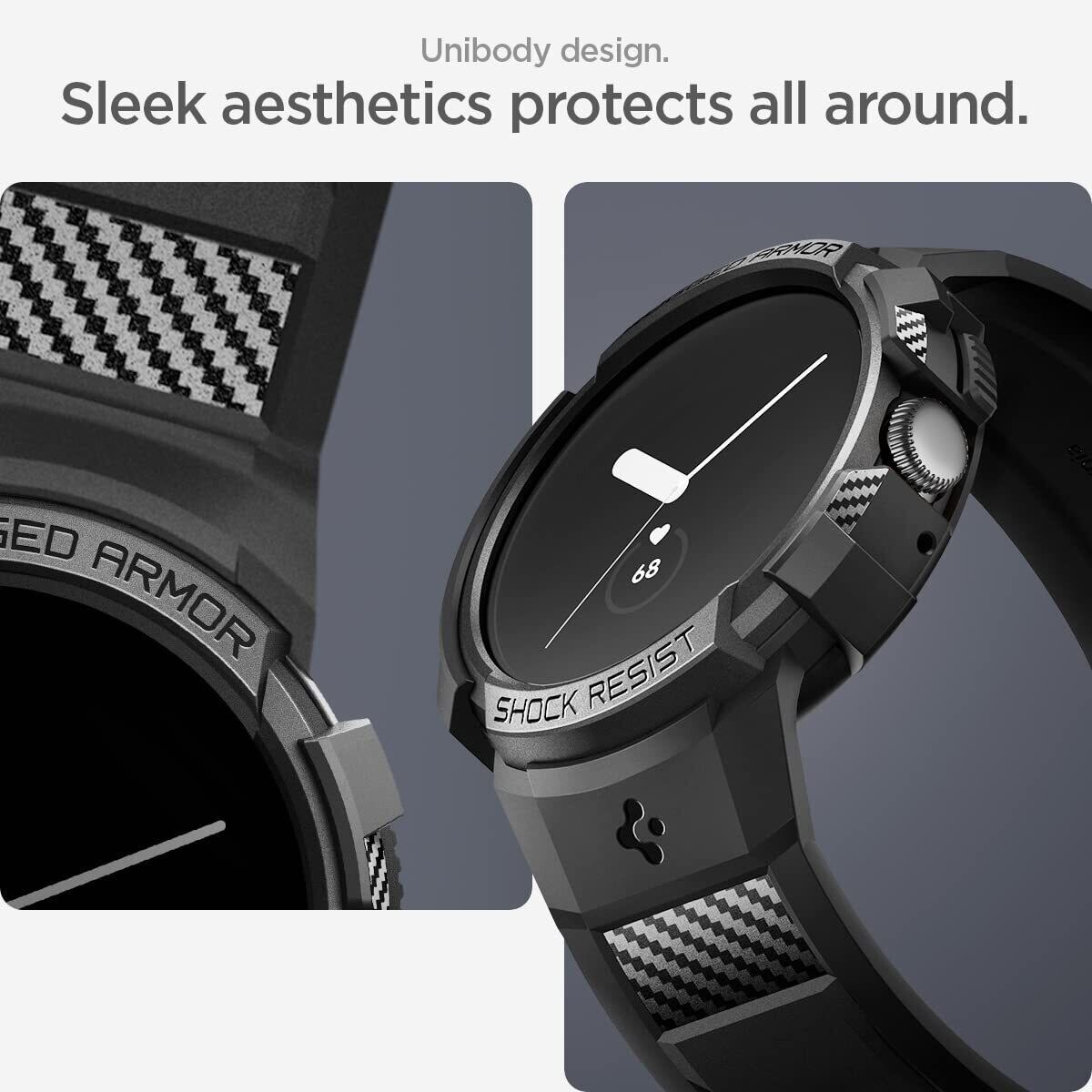 [Spigen] Google Pixel Watch バンド 一体型 ケース 耐衝撃 PC TPU 二重構造 スポーツバンド 落下 衝撃 吸収 耐久性 傷防止 ラギッド・アーマー・プロ ACS04800 (ブラック)