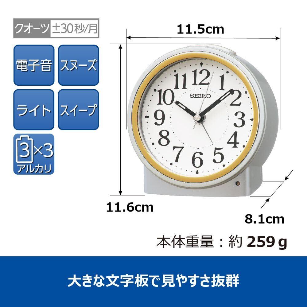 セイコークロック(Seiko Clock) 目覚まし時計 置き時計 自動点灯 アナログ 夜でも見える 銀色メタリック 116×115×81mm KR518S