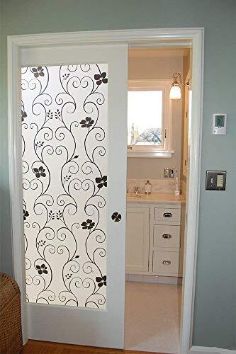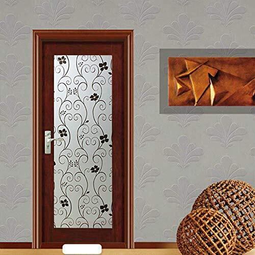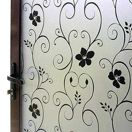 DUOFIRE 窓ガラス目隠しフィルム 目隠しシート めかくしシート 窓用フィルム ガラスフィルム すりガラス調 結露防止 uvカット 水で貼る はがせる 貼り直し可能 浴室 風呂 玄関 断熱 遮光 飛散防止 おしゃれな黒花柄 (0.443MX 2M) DP014B