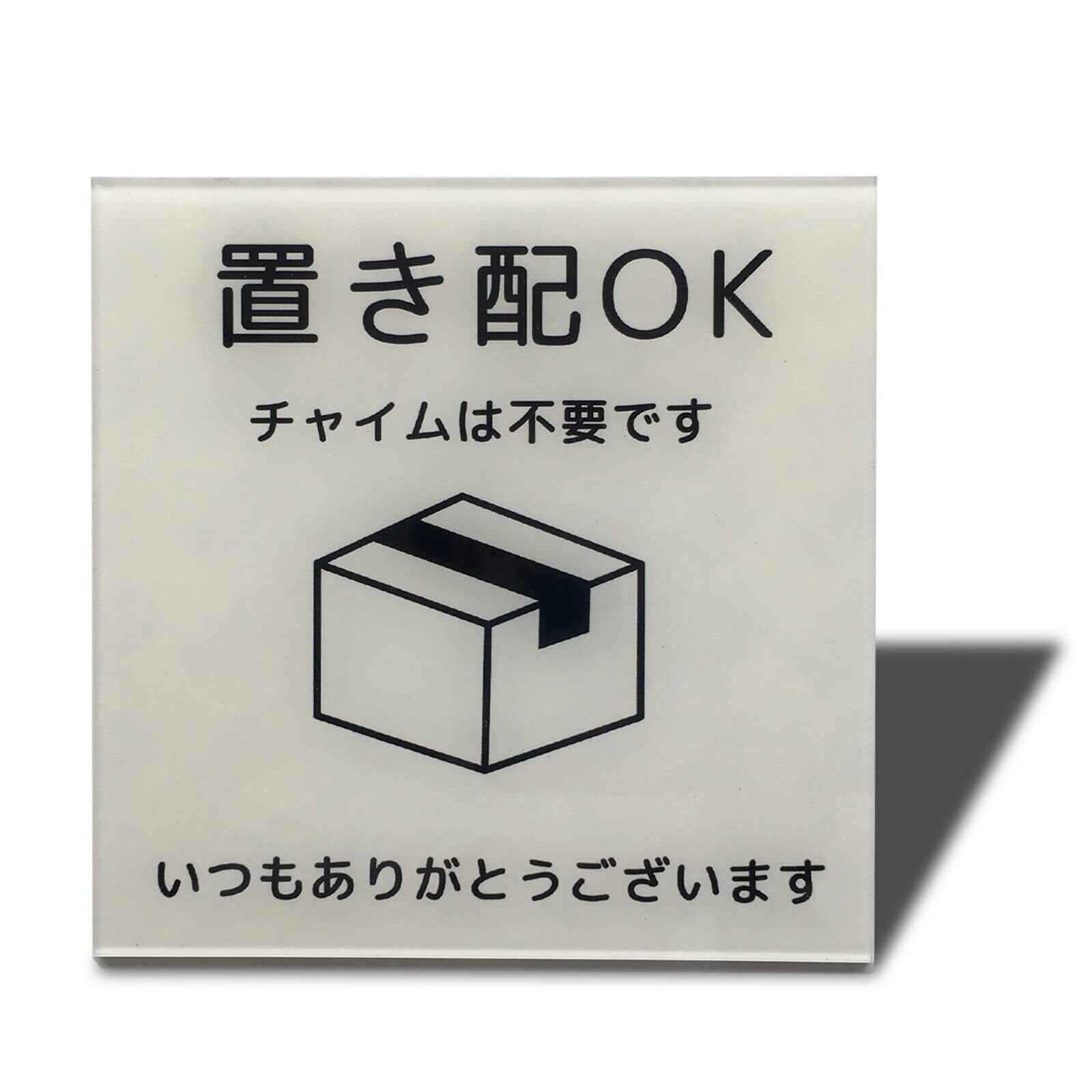 Seagron 置き配OK 宅配ボックス 宅配BOX プレート 両面テープ付き 置き配達 不在案内 再配達防止 2㎜アクリル製 おしゃれ ステッカー (ホワイト80×80㎜(1枚))…
