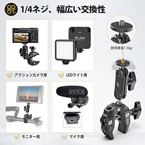 Ulanzi R094 スーパークランプ ボールヘッドアーム 緩み防止 蟹バサミクランプ マジックアーム 360度回転 1/4インチネジ 偏向防止 雲台/撮影 照明機材 固定 デスク アーム バイク ベストアングル プロジェクター ウェブカメラに対応