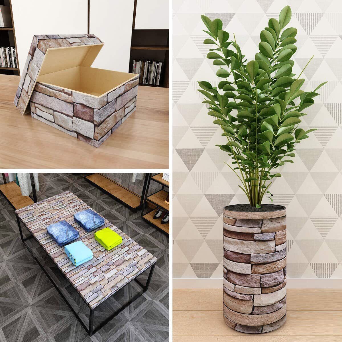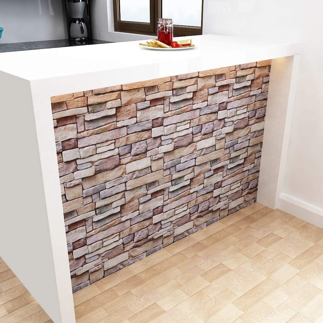 【美しいストーン調】お部屋雰囲気軽に変えたい、人気の石積み柄。切りっぱなしの薄い石を積んだような欧州おしゃれ3D立体風柄で、見た目はまるで本物のストーン レンガ。シール だから壁紙の上にはもちろん、家具や小物のDIYにもおすすめです。