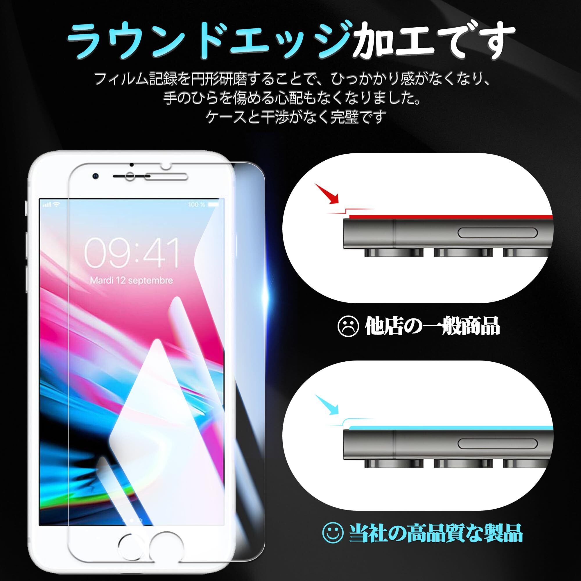 【対応機種】:iPhone8plus iPhone7plus 専用 ガラスフィルム。【注意】この電話の画面の端は湾曲しているため、保護フィルムのサイズが丁度良い場合、しっかりと貼り付けられず、白いエッジやシェルとの干渉などの問題があるため、保護フィルムは画面よりも小さいです。