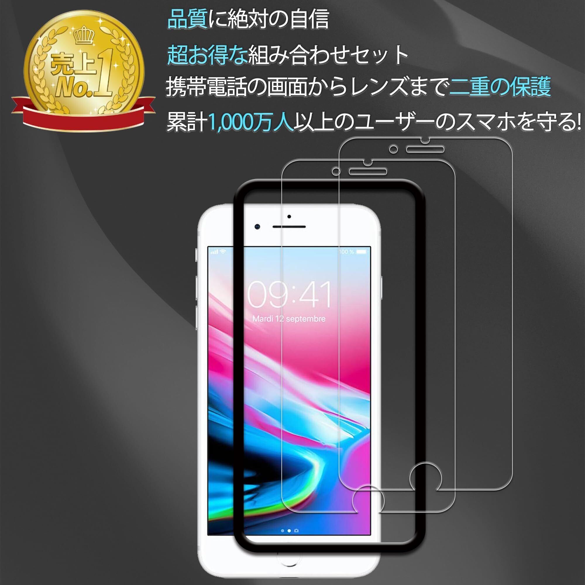 【2枚セット+ガイド枠付き】KPNS 日本素材製 強化ガラス iPhone8 plus iPhone7 plus 用 ガラスフィルム 強化ガラス カバー 保護フィルム