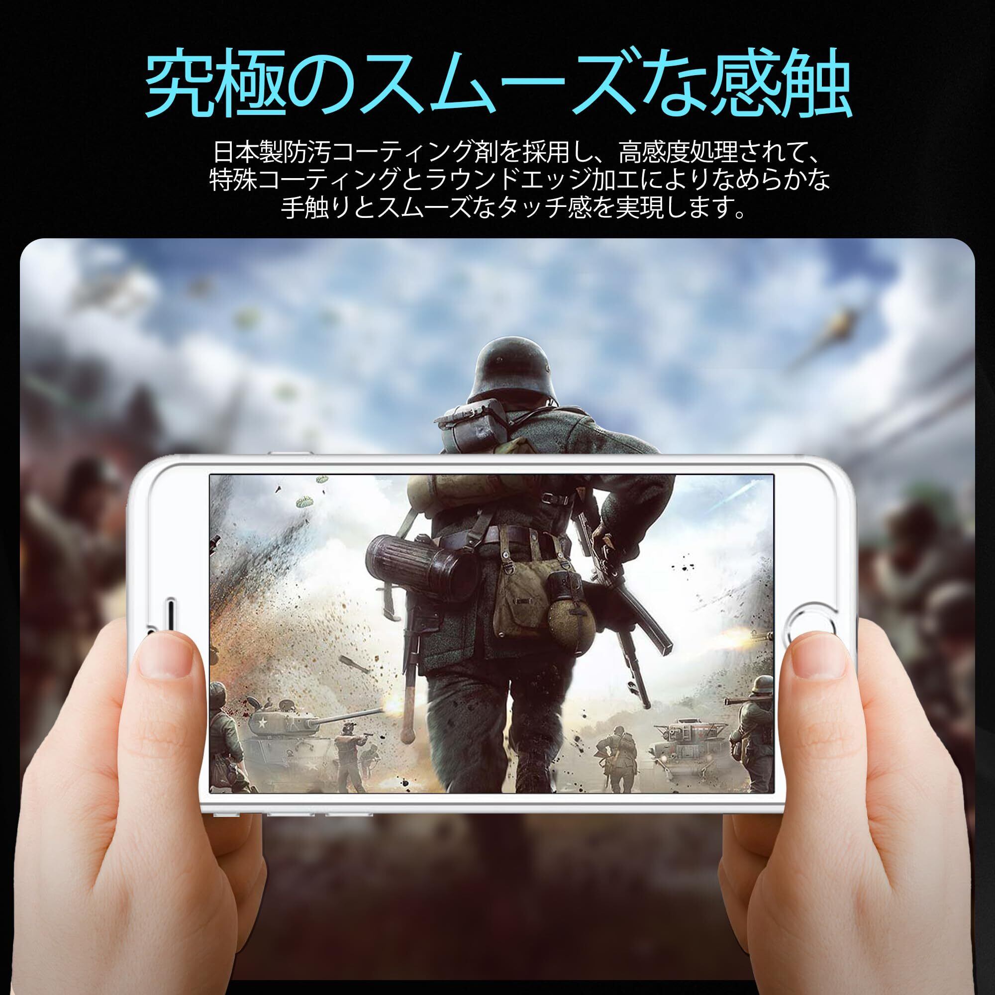 【指紋防止、高感度タッチ】ガラスフィルムには撥油コーティングが施されており、指紋や汚れなどに強くなめらかな操作感を実現、付着した汚れなどは簡単に拭きとれます。こちらは高耐久撥油コーティングが施され、つるつるな滑り感を実現!ゲームしても渋くなし!